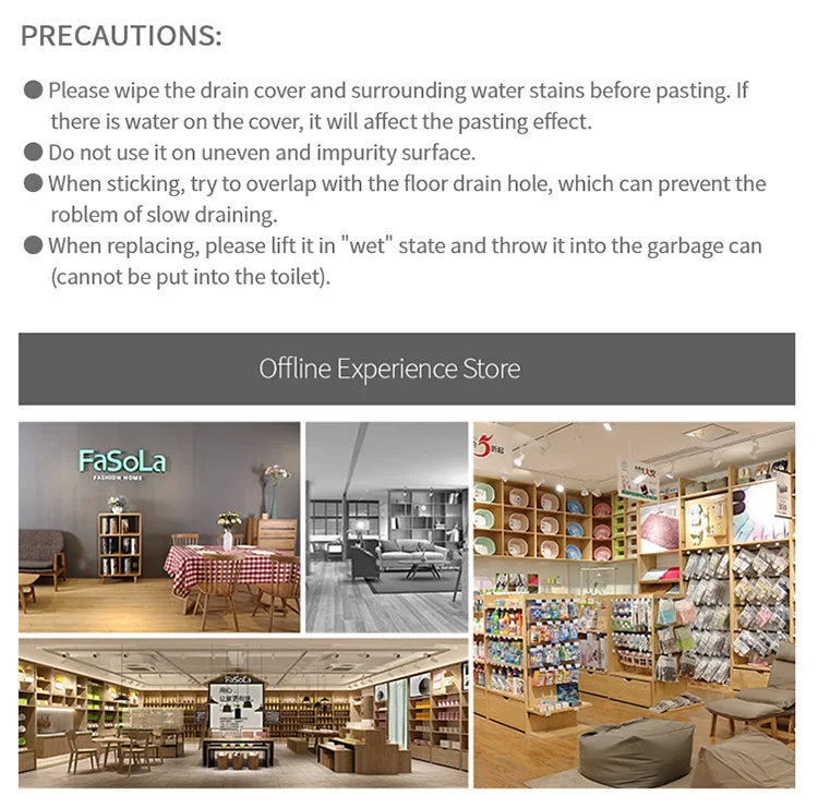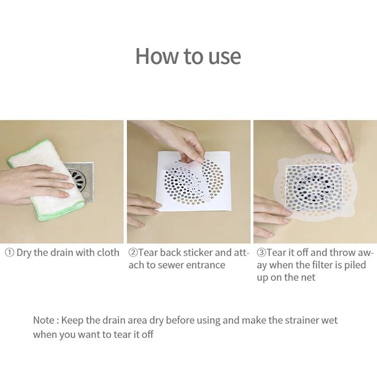 ♥Сушить слив пола и края воды пятна♥Оторвите наклейку на спине и плотно наклейте ее на поверхность Слива пола♥Удалите и удалите после использованияСоветы: Пожалуйста, не забудьте вытереть пятна воды на поверхности перед наклеиванием, пожалуйста, поднимите его во влажном состоянии при замене, чтобы не повлиять на эффект использования