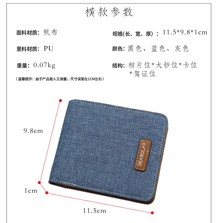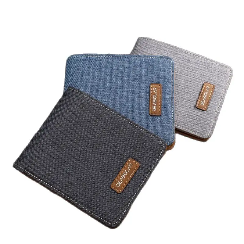 Мужской кошелек, черныйсинийсерый холст + Искусственный тонкий мужс...