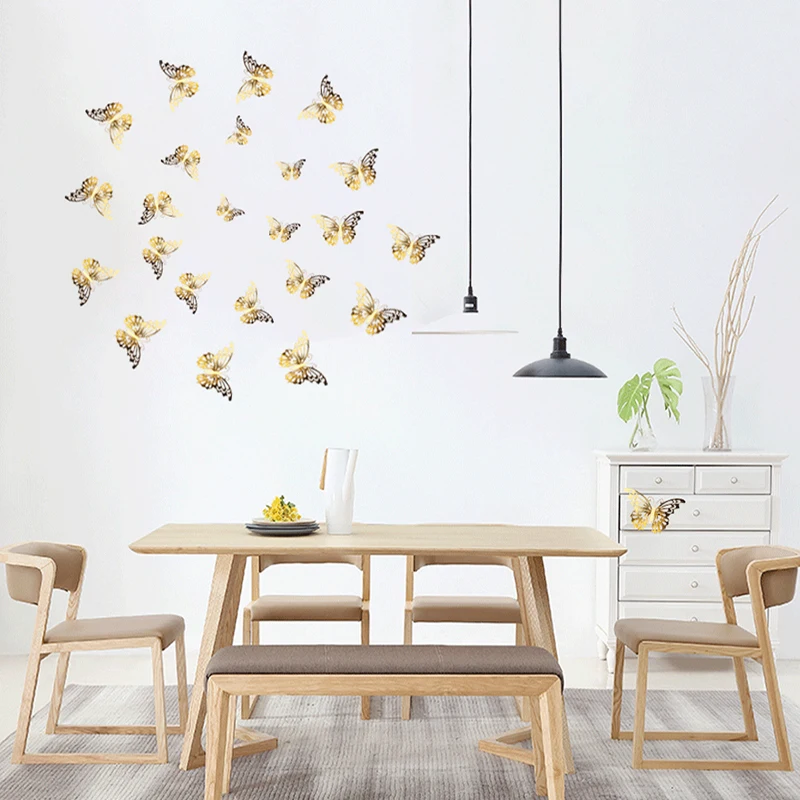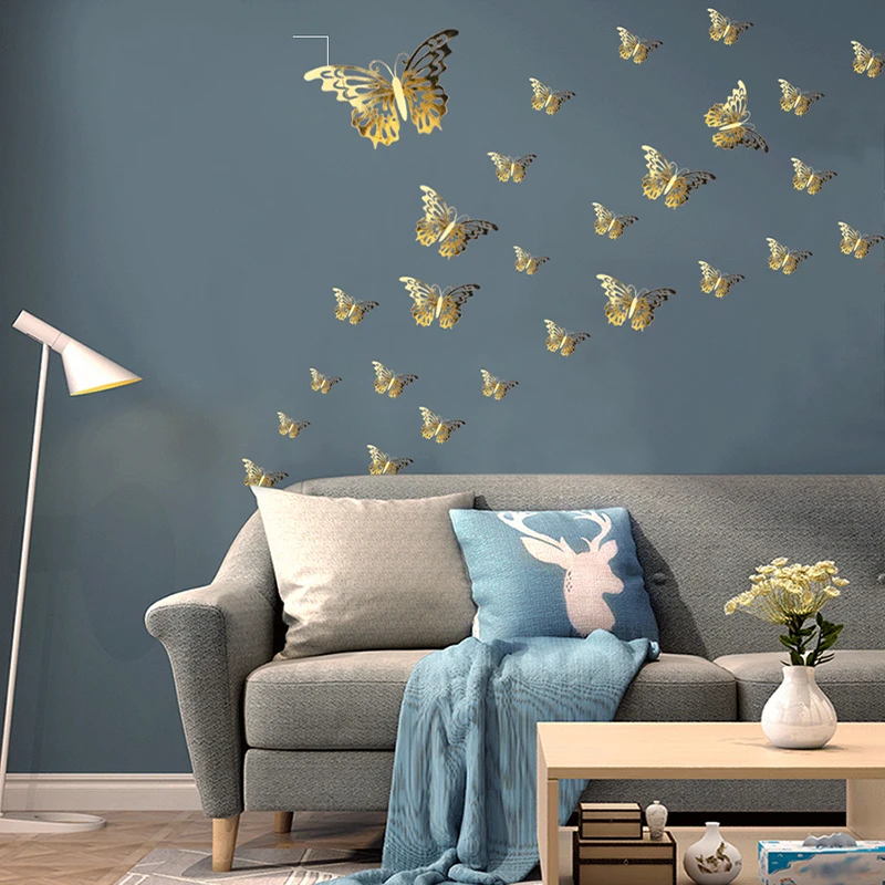 12 шт.компл. 3D полые бабочки настенные стикеры золотые серебряные ...