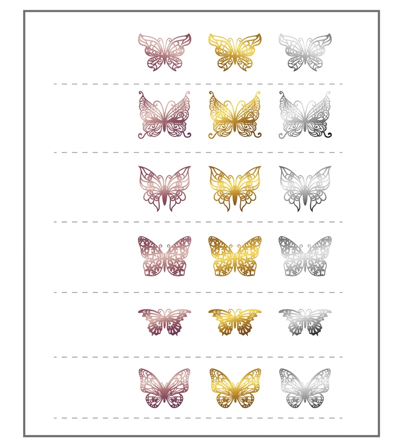 12 шт. 3D наклейки на стену полые розовые Золотыесеребряные бабочки...