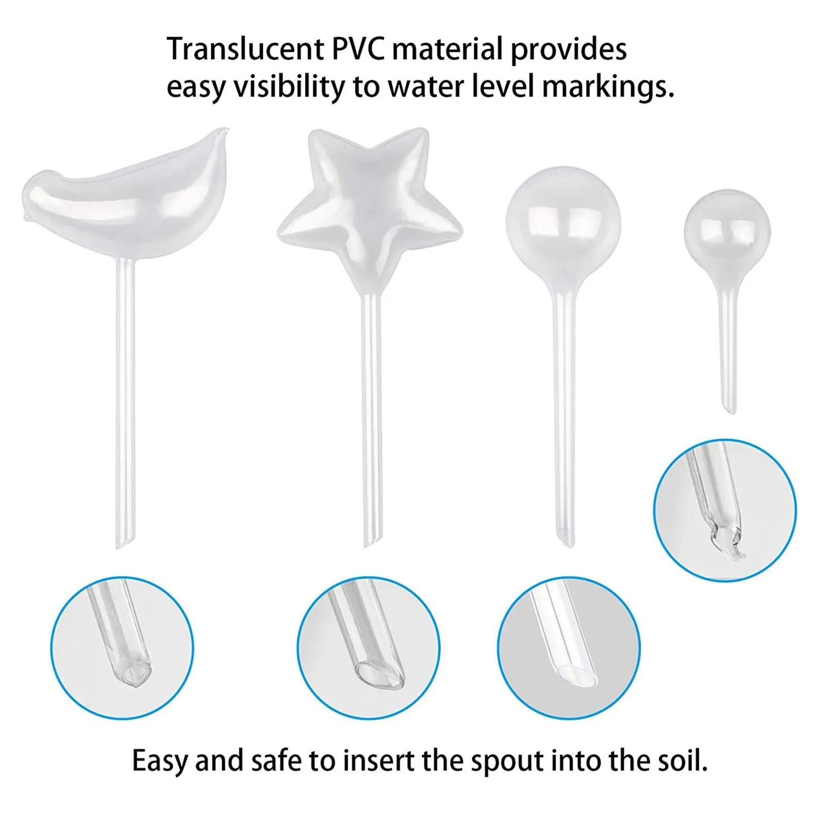 Хорошо видимая Емкость воды: материал ПВХ, не хрупкий, хорошая проницаемость, вы можете четко видеть количество воды внутри, наполнить водой и напрямую вставить поливочное устройство в почву, вы можете обеспечить воду, необходимую растениям каждый день, и помочь вам ухаживать за цветами в домашних условиях.