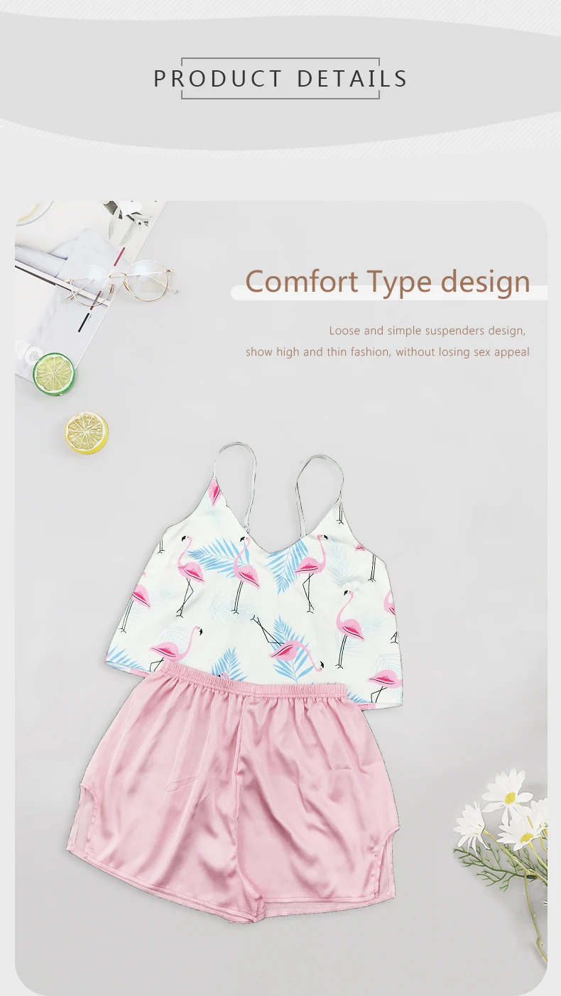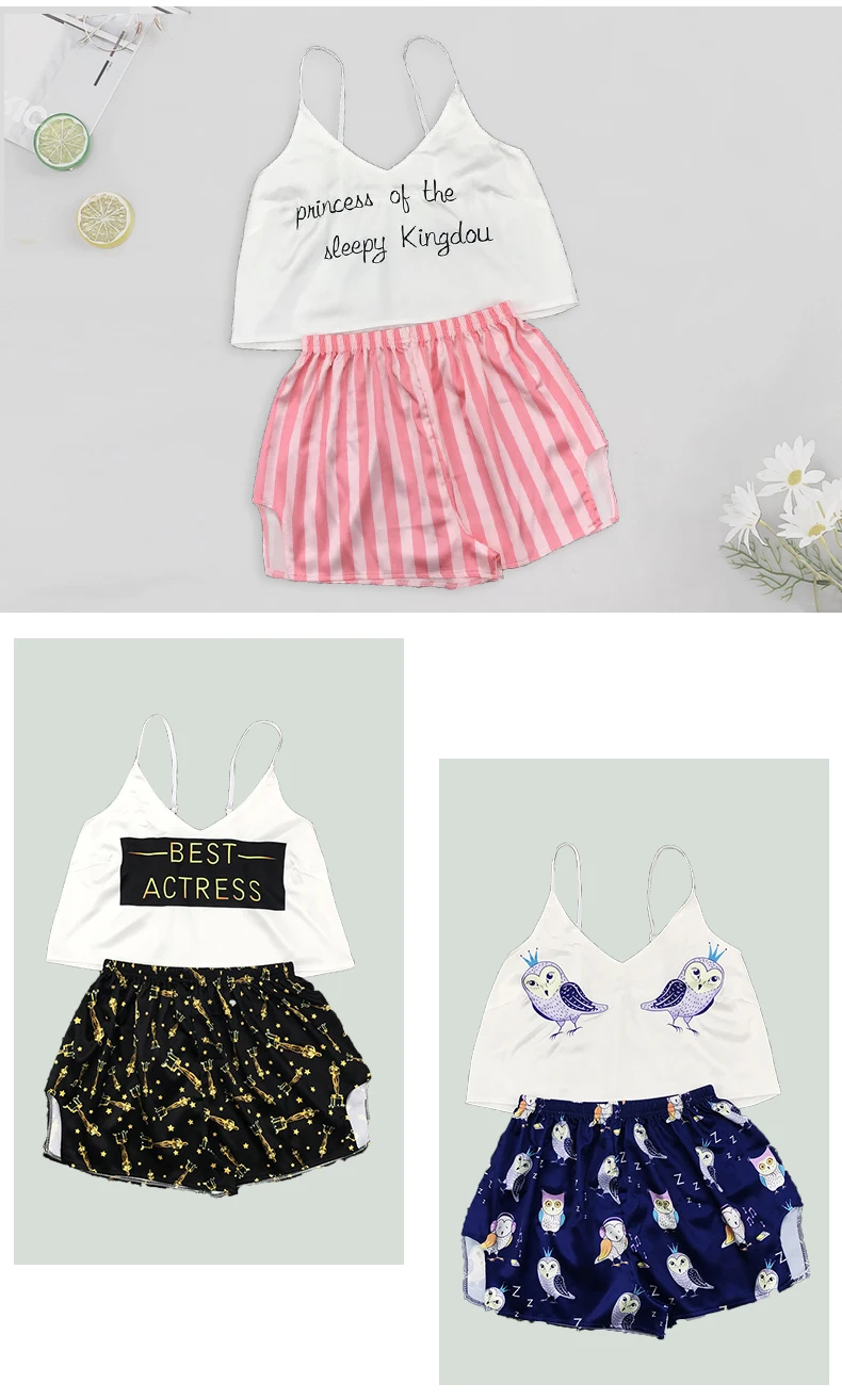 Новые атласные топы без рукавов с шортами, костюмы, милые пижамы с животным принтом для девочек, летние Пижамные комплекты с V-образным вырезом для женщин