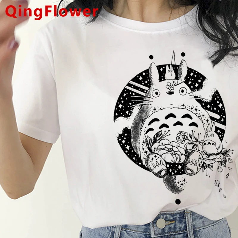 Футболка женская в стиле Харадзюку, милая рубашка с мультяшным принтом Тоторо из аниме Миядзаки Хаяо, топ в стиле ольчжан, Миядзаки