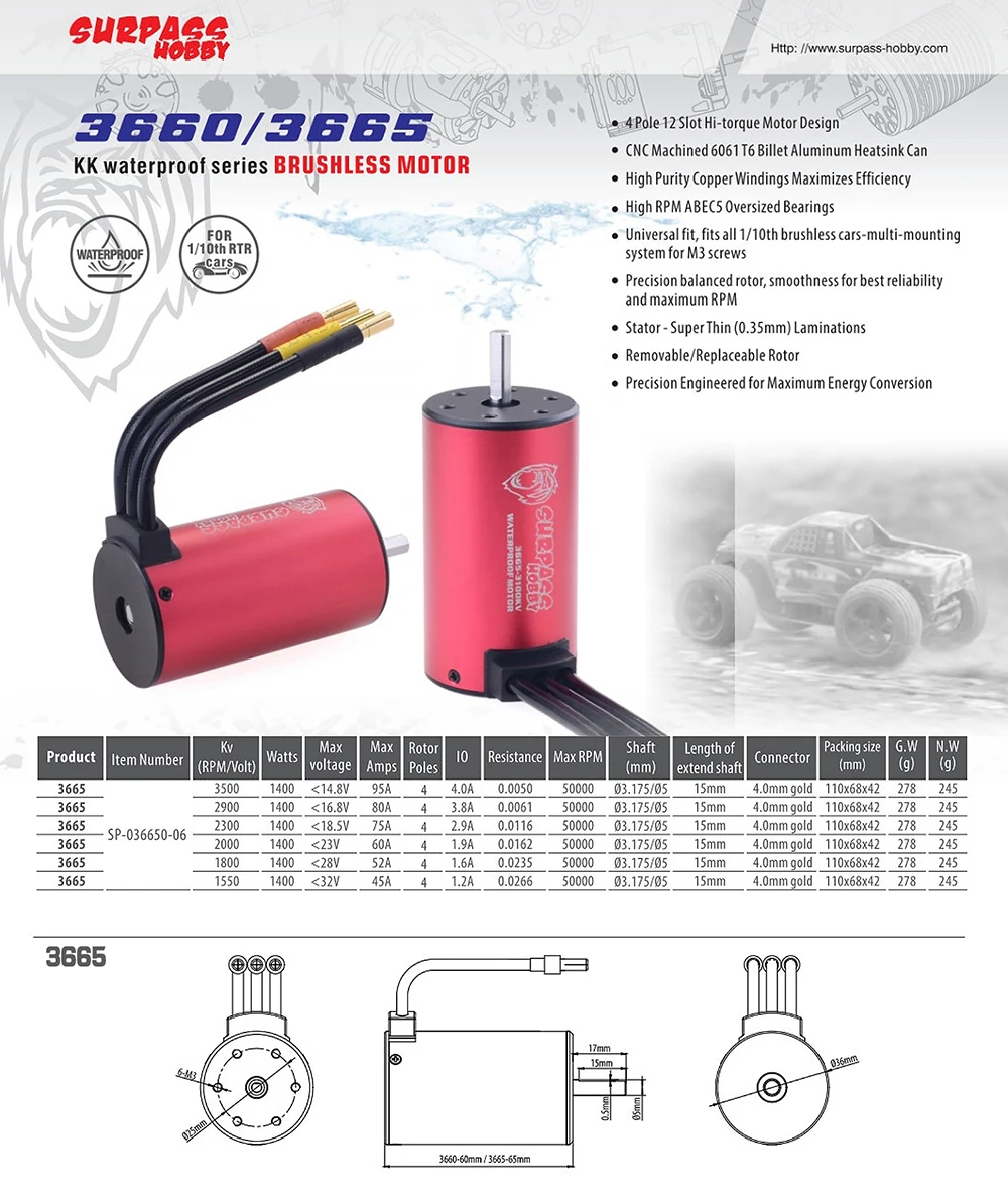 Горячая Распродажа! SURPASSHOBBY водонепроницаемый 3665 бесщеточный двигатель 5 мм для 110 2S 3S RC Дрифт гоночный внедорожник