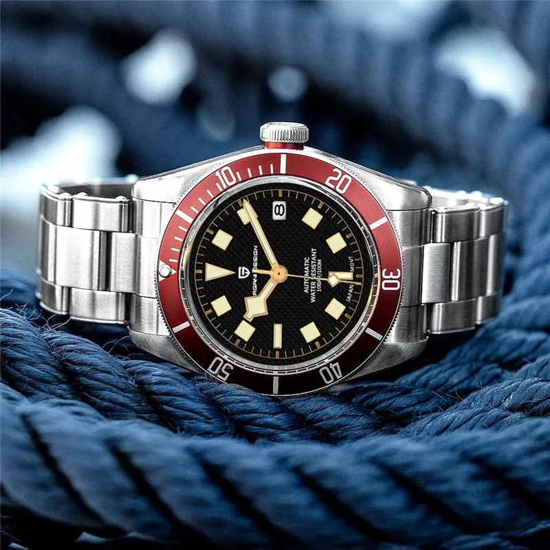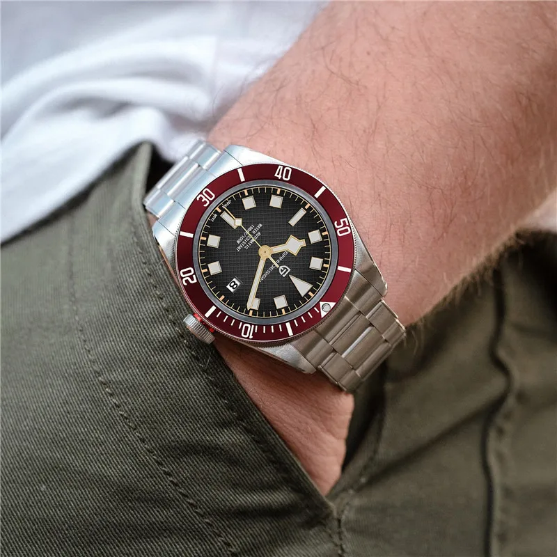 Модель: PD-1671 Механизм: JAPAN Seiko NH35A [автоматический механический механизм] Чехол: материал-твердая нержавеющая сталь 316L, процесс рисования 42 мм в диаметре Длина 48 мм Толщина 13 мм Ширина ремешка 20 мм Стекло: сапфировое стекло Рамка: анодированная алюминиевая перегородка, световая отметка 12 часов Цвет циферблата: матовый черный, матовый синий, матовый красный, матовый черный и синий Руки: руки в стиле ретро со снежинками, светящееся покрытие Световой эффект: Ретро световой эффект BGW-9 синий светильник, стрелки и маркеры Заводная головка: закручивающаяся заводная головка с 3D логотипом бренда с глубоким прессованным узором Чехол-накладка: прозрачная нижняя крышка Ремешок: браслет с заклепками из нержавеющей стали 316L Застежка: Складная Защитная пряжка с логотипом PAGANI DESIGN Водонепроницаемость: 10 бар = 100 метров Вес: около 145 г