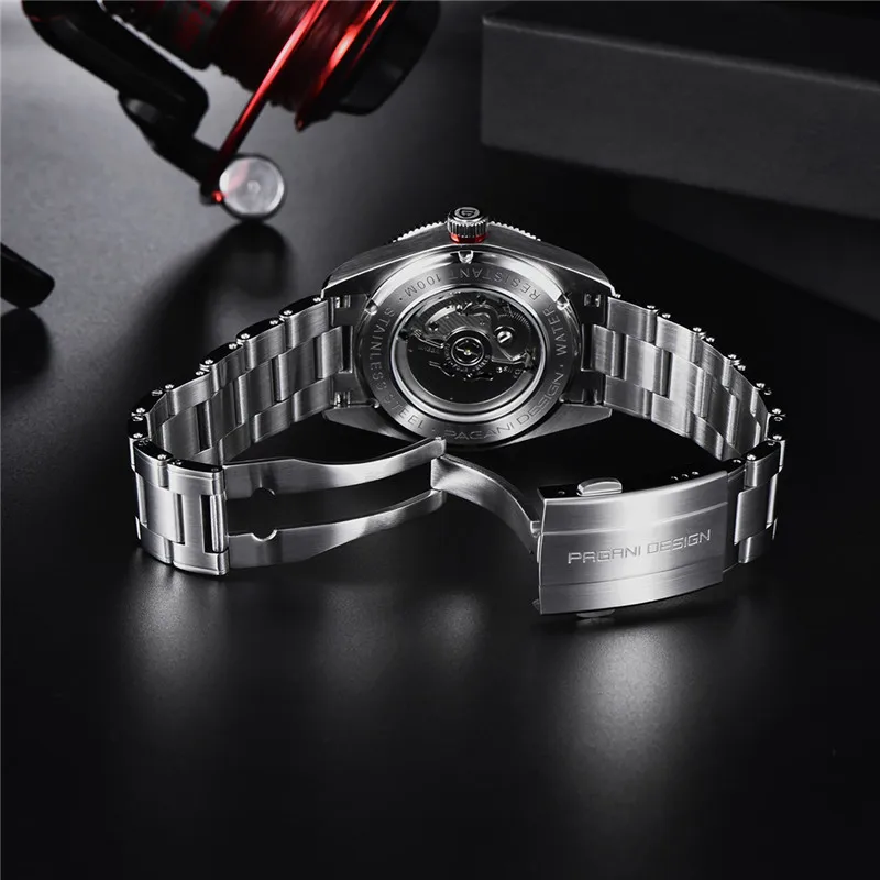 Часы мужские, механические, водонепроницаемые, черные, 2021 м, из нержавеющей стали