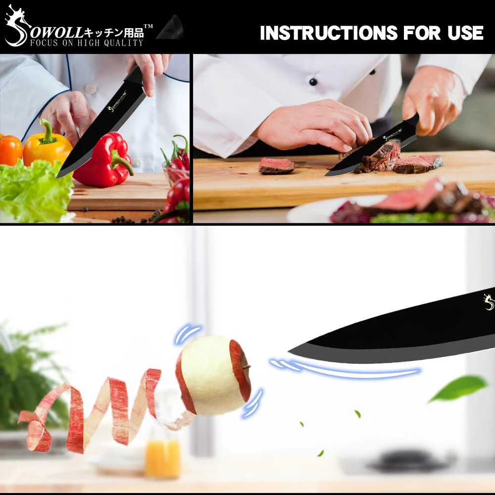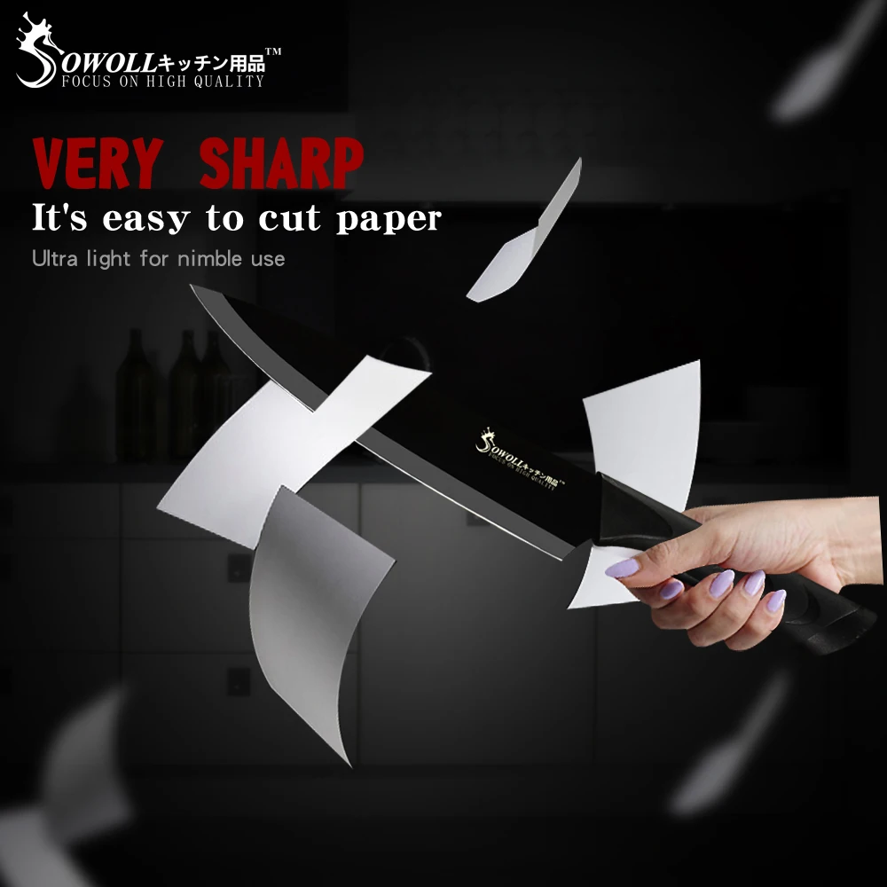 Нож шеф-повара из нержавеющей стали Sowoll, крутой черный кухонный ...