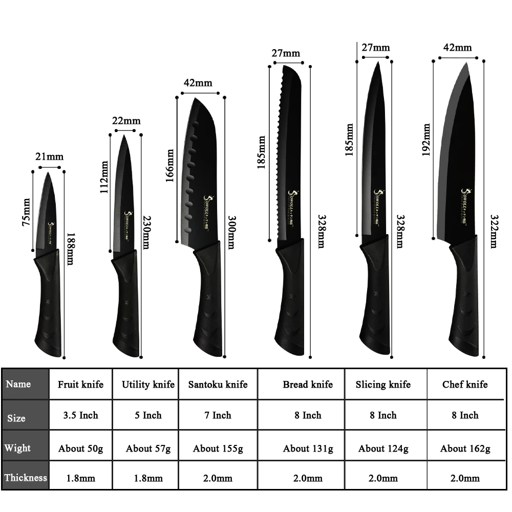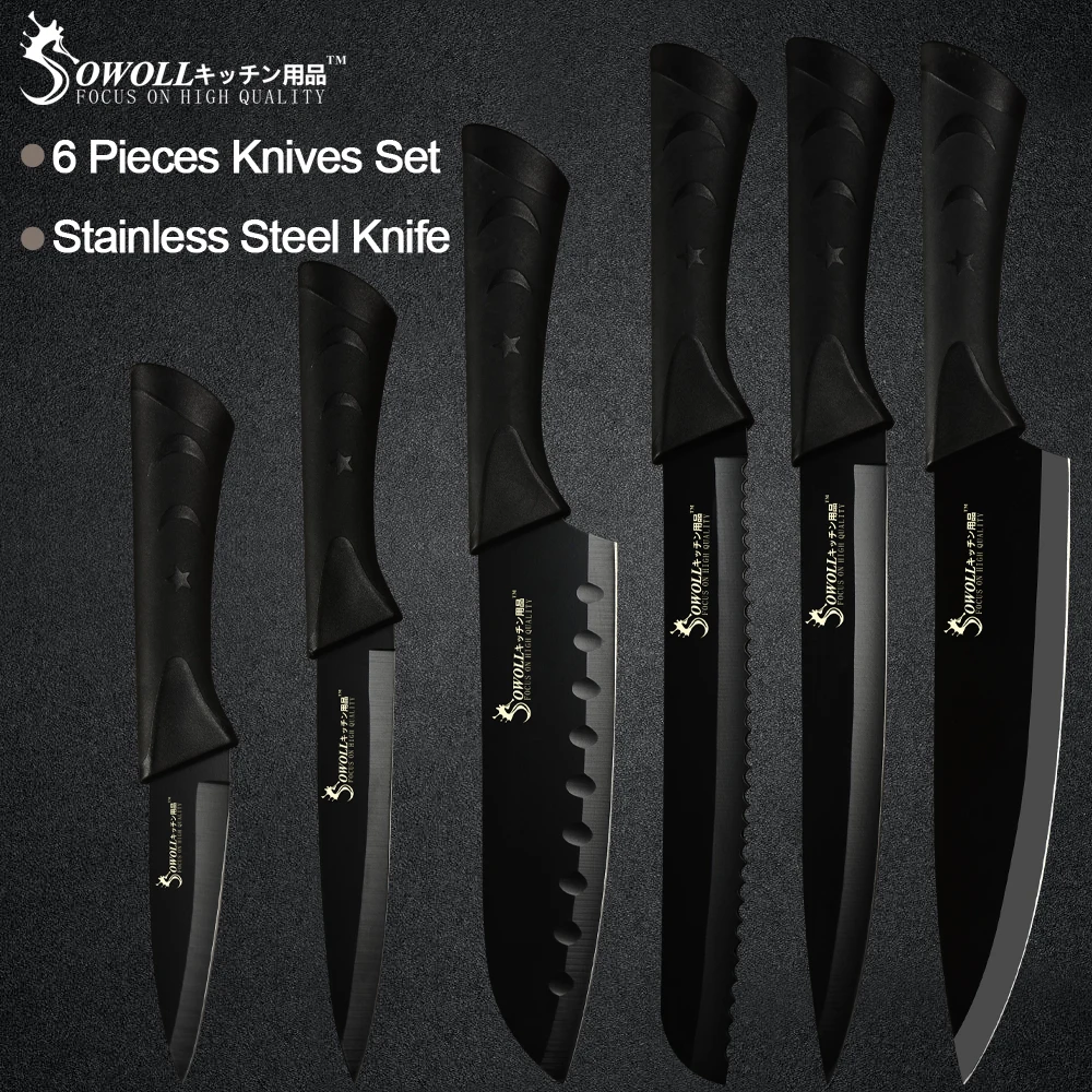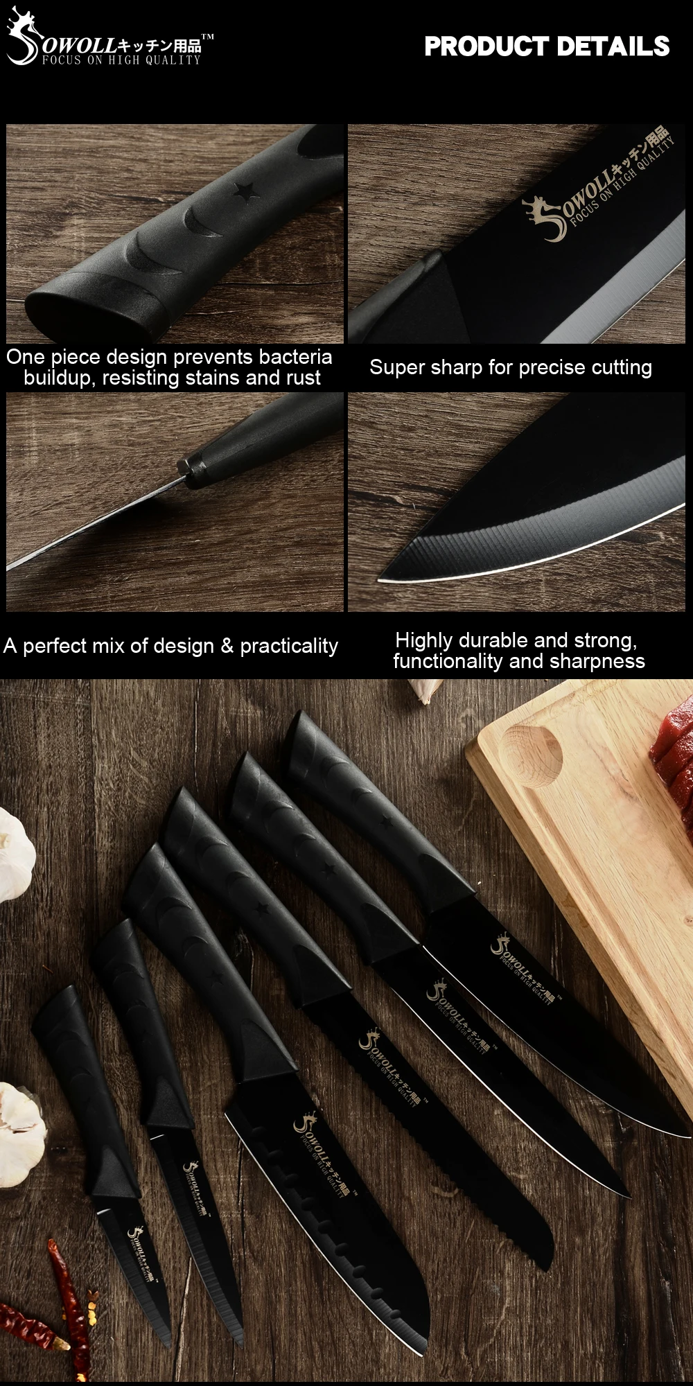 Набор кухонных ножей Sowoll, Черное лезвие, качественная нержавеюща...