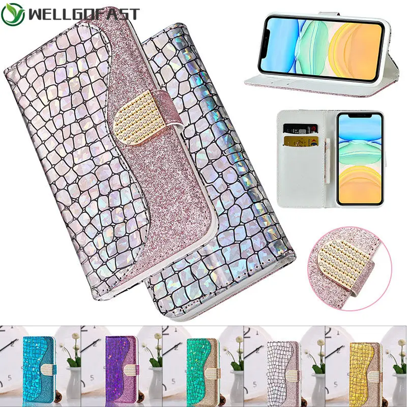 Роскошный блестящая Лазерная блестящий чехол-книжка с блестящими Стразы