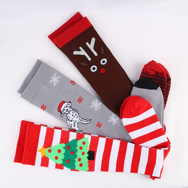 Милые рождественские Компрессионные носки для мужчин и женщин, Оригинальные Инновационные Необычные носки из нейлона с изображением лося, снеговика, рождественской елки