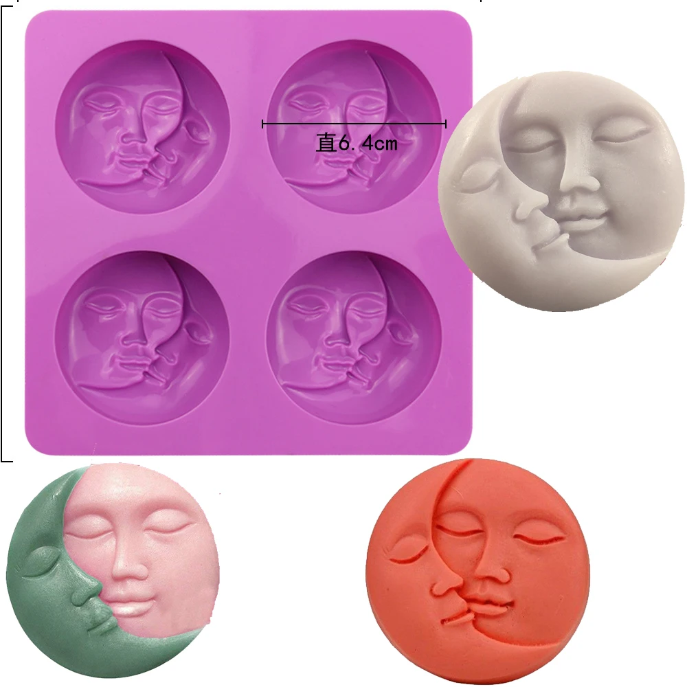 Силиконовая форма для мыла с 4 полостями Солнца и Луны, форма для м...