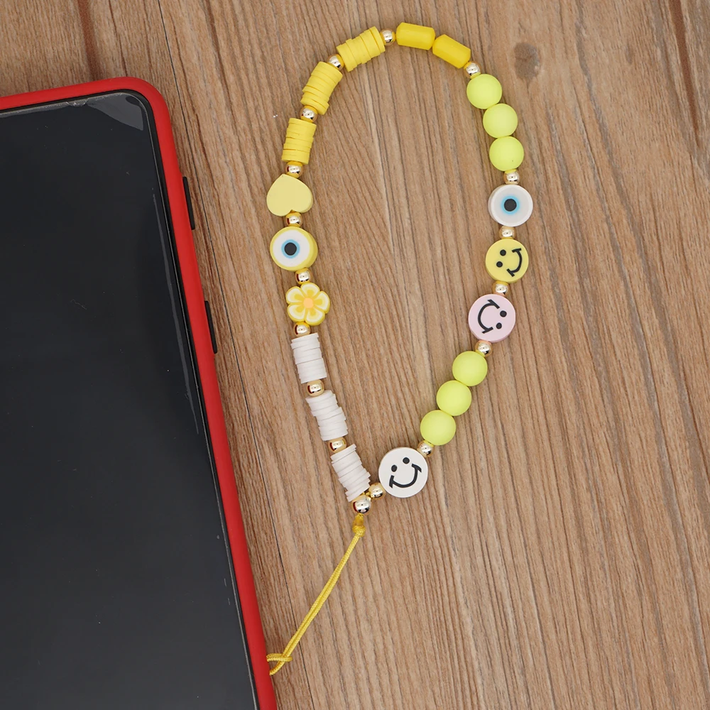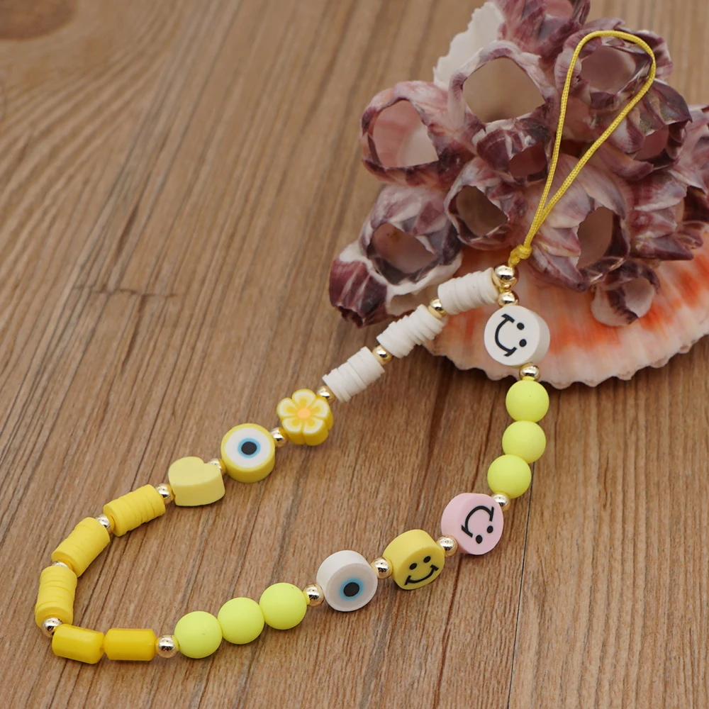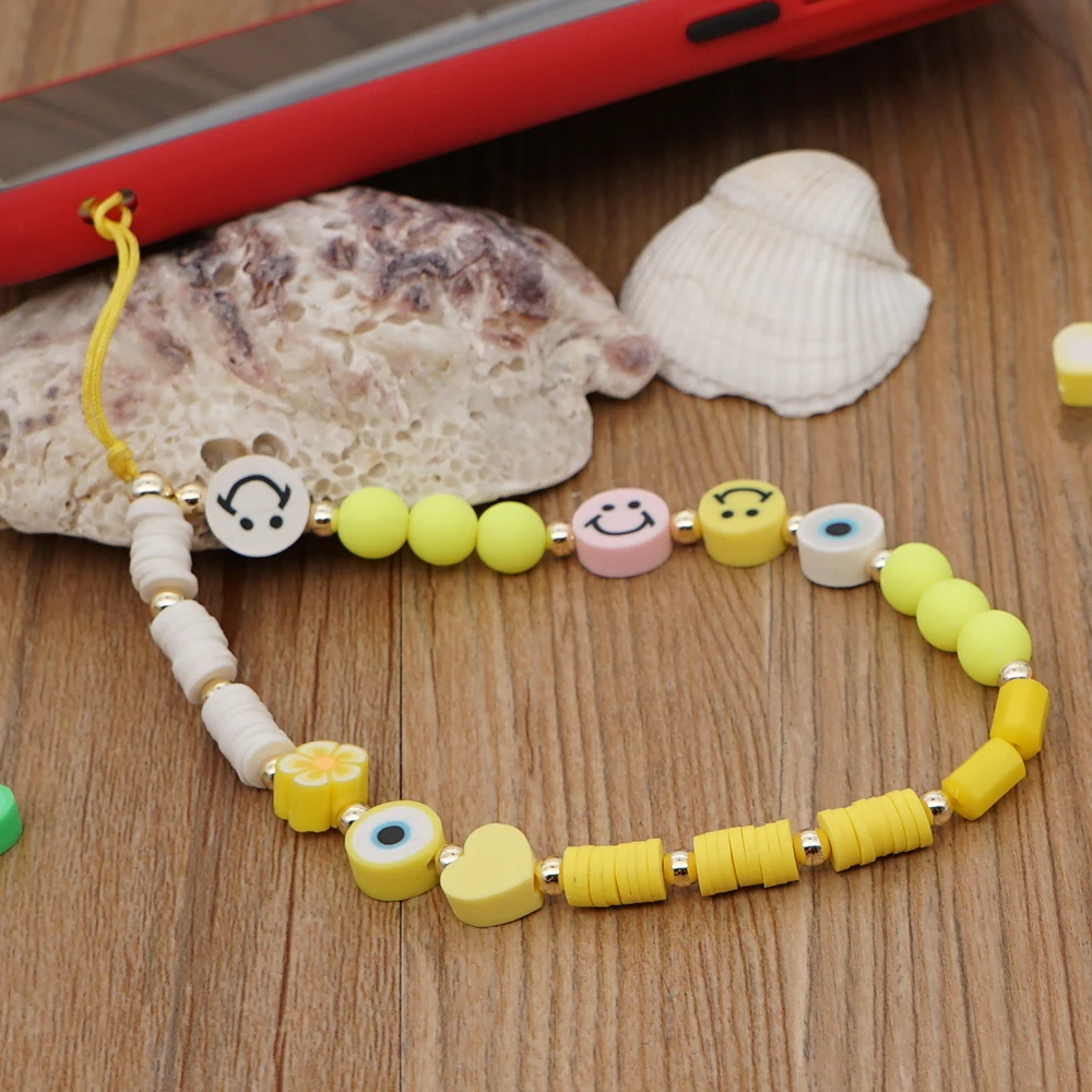 Go2Boho 2021 горячая Распродажа, полимерная глина, бисерный ремешок для телефона, Турецкий Дурной глаз, цепочка Heishi Disc Beads, запястье, Smile Face Chains, ремешок