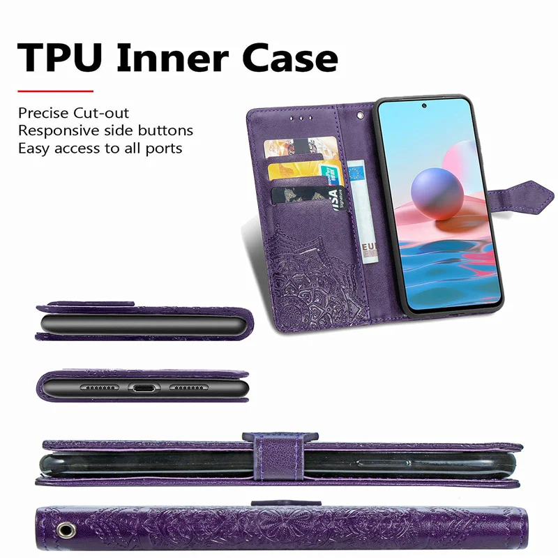 Чехол-Кошелек для Xiaomi Redmi Note 10, чехол-сумка с цветочным рисунком, чехол из ТПУ, кожаный чехол для Redmi Note 10, чехол для Redmi Note 10, чехол-книжка