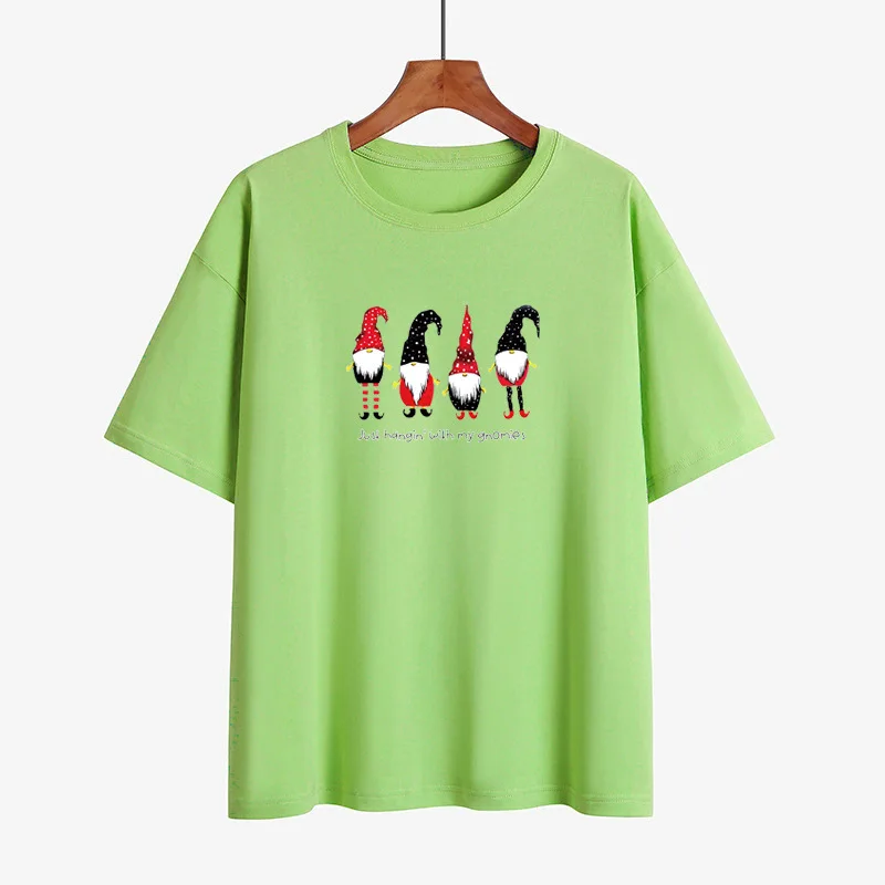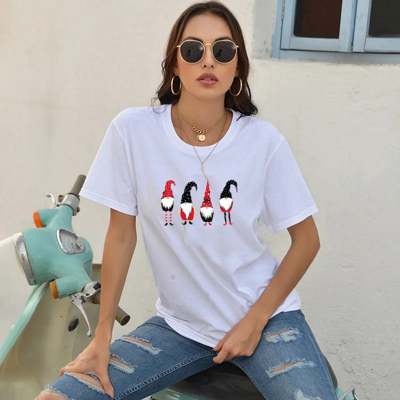 Футболка женская хлопковая с забавным принтом, Свободный Топ с карликом на Рождество, с маленьким карликом, мультяшный рисунок на Рождество, на лето