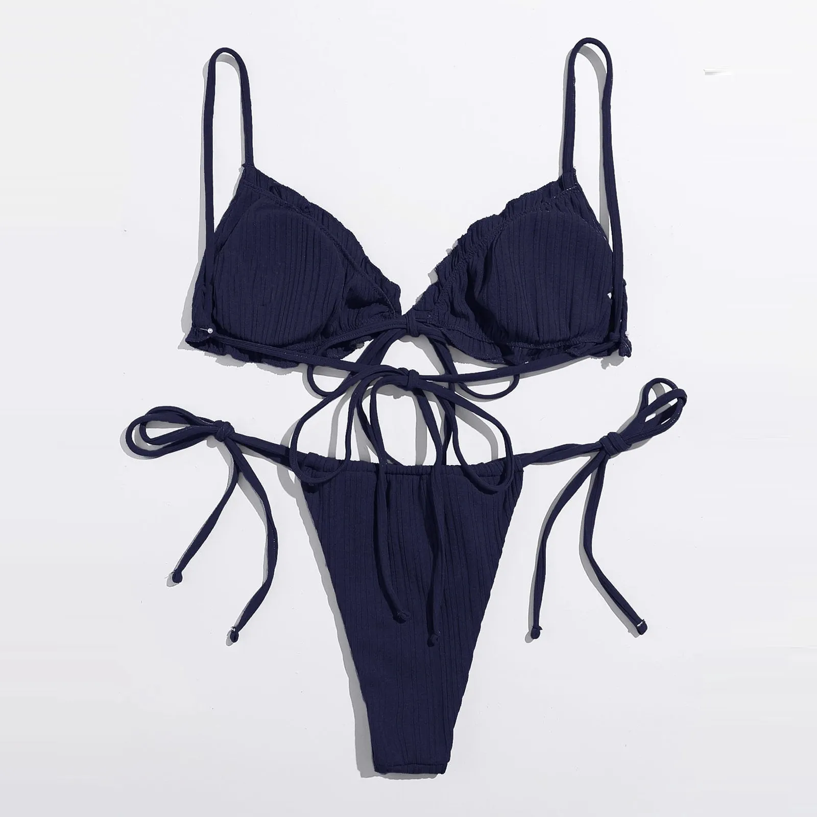 Плиссированные Мини-стринги, комплект бикини, купальник на шнуровке...