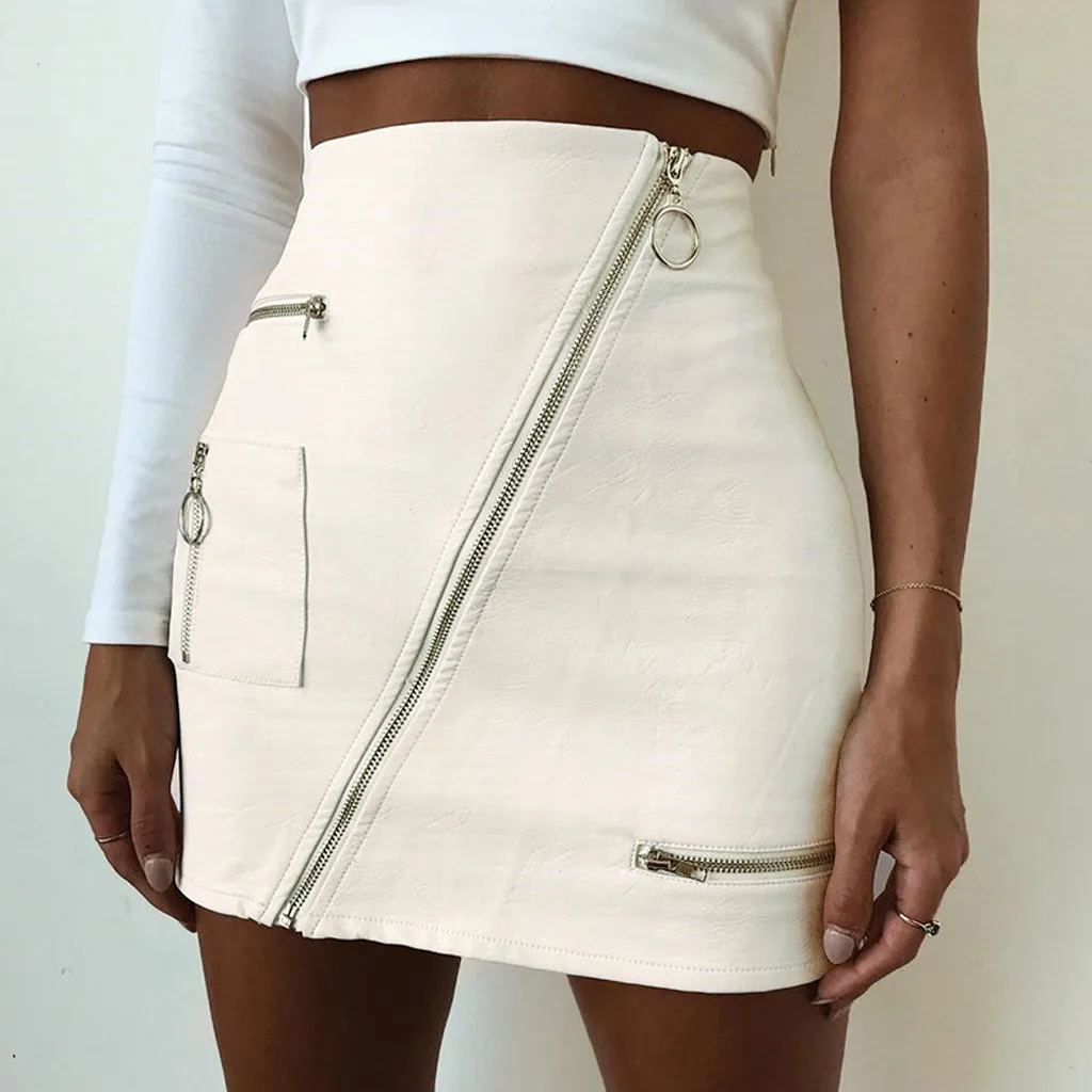 Женская модная юбка 2021, короткая юбка из искусственной кожи на молнии