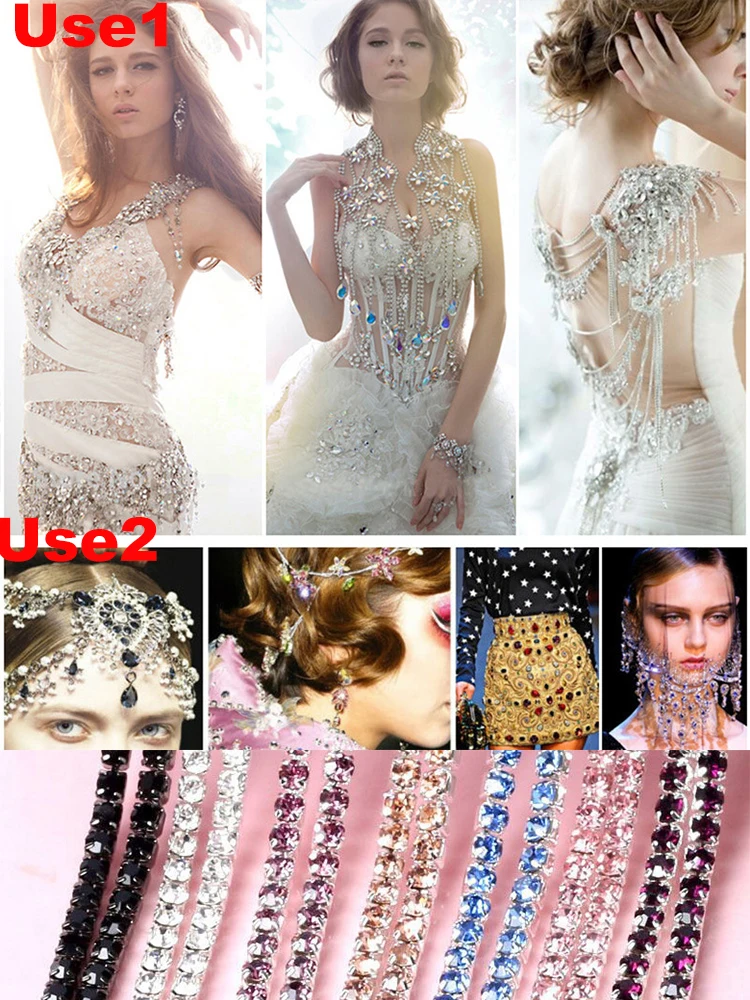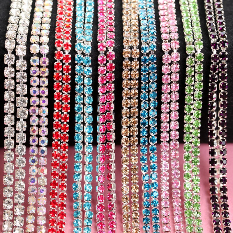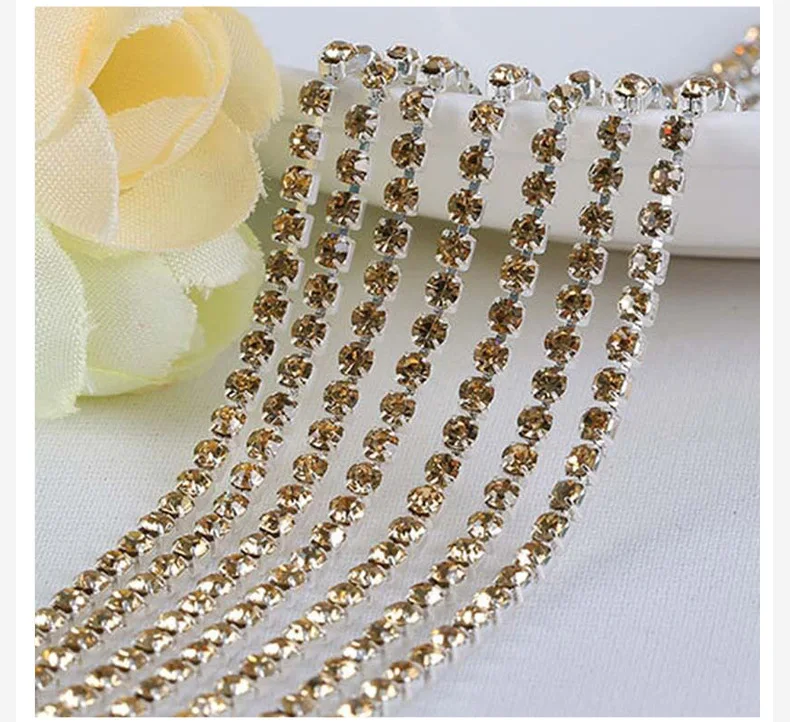 1 ярд Стразы цепи плоская задняя серебряная застежка стразы отделка Кристалл для DIY Ручная вышивка отделка аппликация Рукоделие украшение