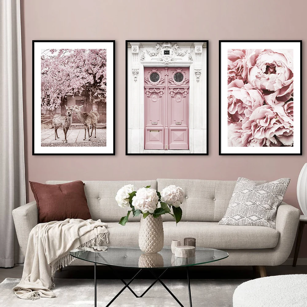 Скандинавский Wall Art плакат розового цвета с принтом в виде пионо...