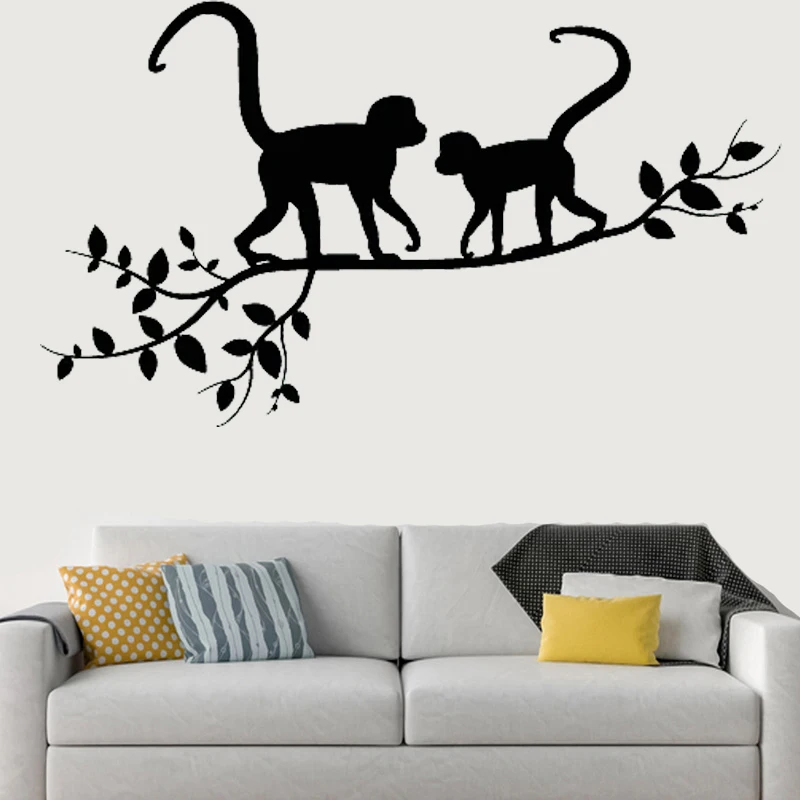 Наклейка на стену с обезьянками животных виниловые наклейки в виде Фотообоев c переводными картинками Детские Спальня Гостиная декоративное дерево домашний декор ветка листья арт настенная лес