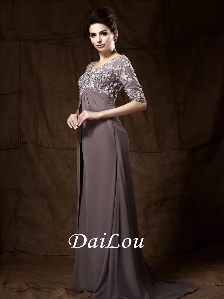 Материал: шифон Форма корпуса: все размеры Силуэт: трапеция Шлейф: щетка/щетка Подол: Длина в пол Длина рукава: рукав до локтя Вырез: v-образный вырез Талия: империя Детали сзади: молния Украшения: блестки, аппликации Подходящий повод: вечер, Свадебная вечеринка Сезон: весна, осень, лето