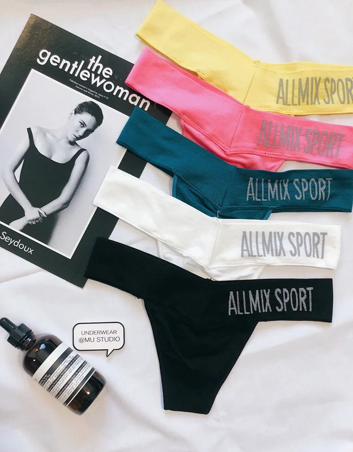 Ультрамодные хлопковые стринги с надписью, нижнее белье для девочек, бикини, Трусы-стринги, удобные женские трусы
