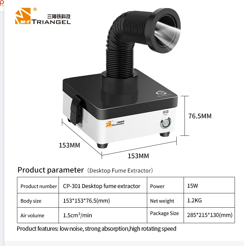 Параметры продукта (настольный дымоулавливатель)Номер продукта: CP-301 Настольный вытяжитель дыма