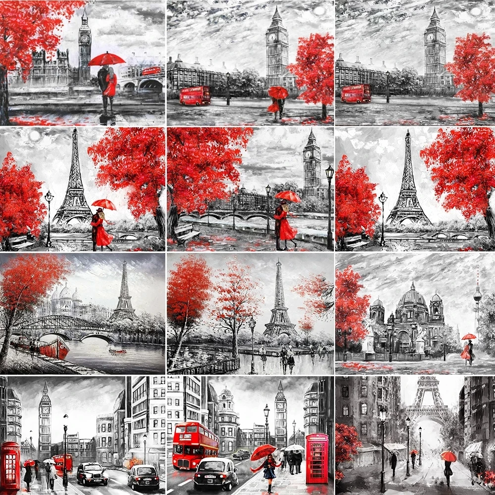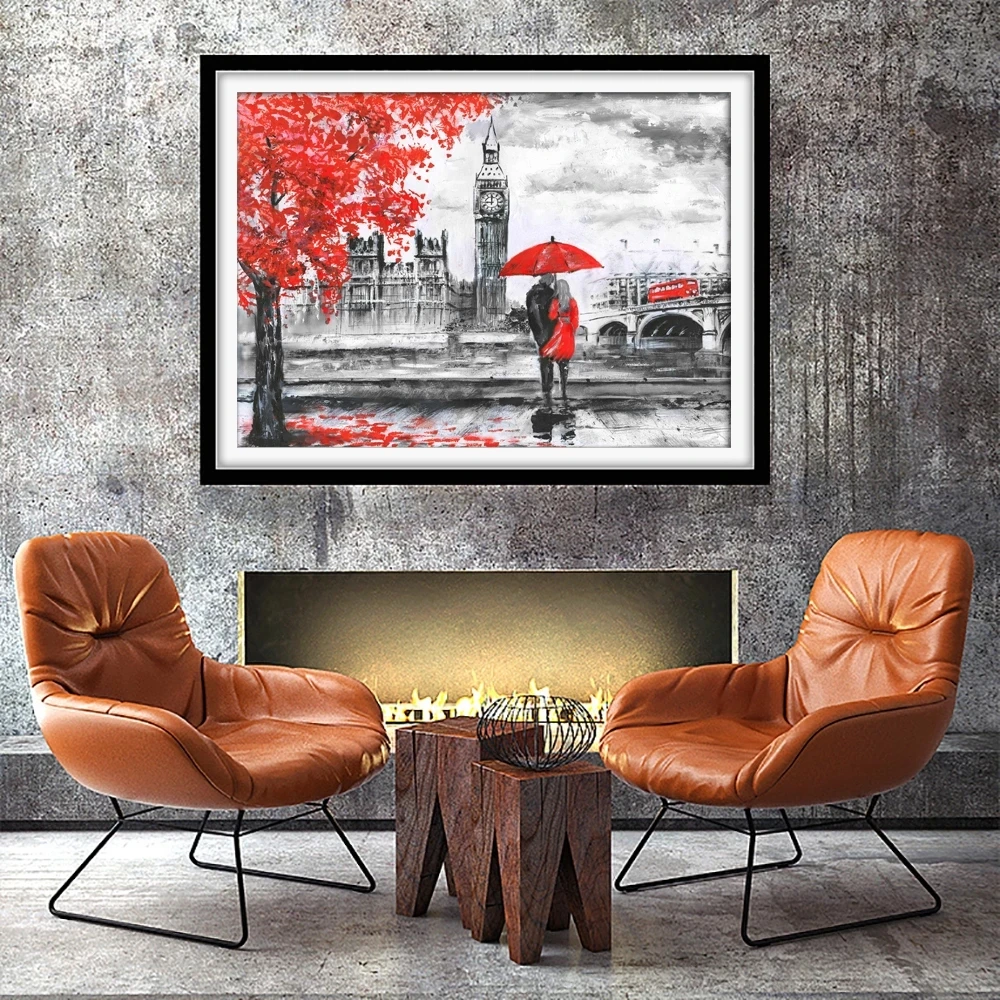 5D алмазная живопись влюбленных под красным зонтом полный квадратны...