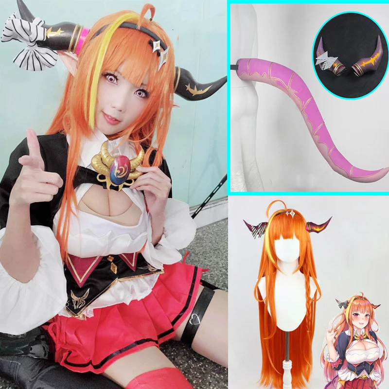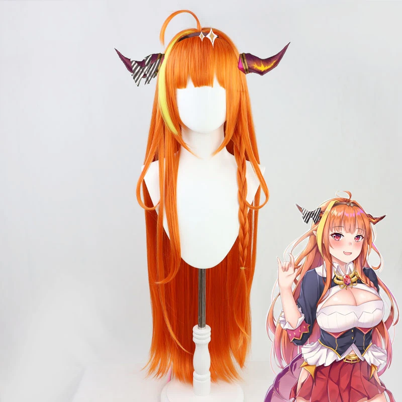 VTuber Kiryuu Coco парик Hololive косплей для девочек оранжевый смешанный желтый 90 см длинные плетеные волосы синтетические волосы Kawaii хвост головной убор