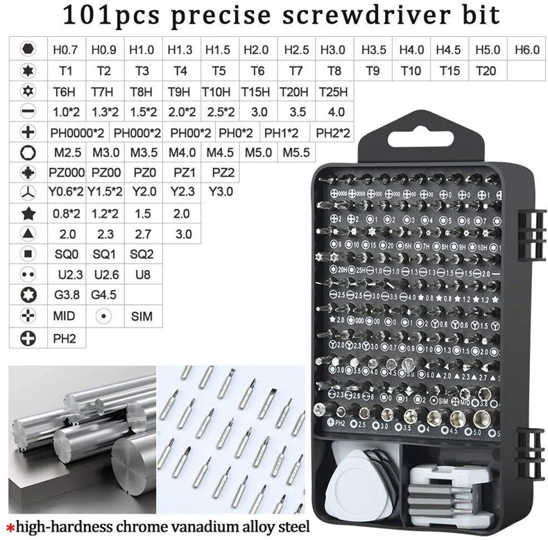 Информация о производстве: Супер-высокая стоимость по конкурентоспособной цене. 122 в 1 для широкого спектра приложений (компьютер, смартфон, ноутбуки, Xbox, планшеты, камера, игрушка) Противоскользящая ручка из силикона высокого качества и эргономичного дизайна. Изготовлен из хромированной ванадиевой стали, которые не легко ломаются и долговечны. Разумная посылка, простая в использовании и переноске. Особенности и характеристики: 90 x бит: Phillips: PH000, PH000, PH00, PH00, PH0, PH0, PH1, PH1, PH2 и PH2 M, word, Bit: PZOO, PZOO, PZO, PZO, PZ1, PZ1, PZ2 и PZ2 Прямые: 1,0, 1,5, 2,0, 2,5, 3,0, 3,5 и 4,0 Прямые: 1/16, 5/64, 3/32, 7/64, 1/8, 9/64 и 5/32 Пять звезд: 0,8, 0,8, 1,2, 1,2, 1,5, 1,5, 2,0 и 2,0 Torx: T3, T3, T4, T4, T5, T5, T6, T6, T7, T7, T8, T8, T9, T9, T10, T10, T15, T15, T20, И T20 Шестигранник: 07, 0,9, 13, 1,3, 1,5, 1,5, 2,0, 2,0, Z5, 2,5, 3,0, 3,0, 3,5, 4,0 и 4,0 Шестигранник: 1/16, 5/64, 3/32, 7/64, 1/8, 9/64 и 5/32 Треугольник: 2,0, 2,3, 2,7 и 3,0 Форма "U": 2,6 и 2,6 Форма «Y»: 2,0 и 3,0 4 мм разъем: M2.5, M3.0, M3.5, M4.0, M4.0, M4.5, M5.0 и M5.5 Упаковка: 1 х алюминиевая ручка 1 x Универсальный стержень 1 x Удлинительный стержень 1 пинцет 2 коронки 1 х намагничиватель/размагничиватель 1 присоска 1 х треугольники