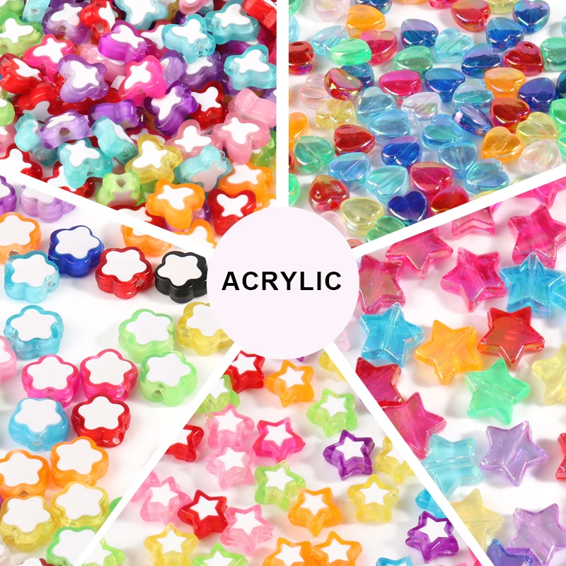 100200300 шт. разноцветные акриловые бусины Звезды Любовь Сердце разделитель бусины для DIY браслетов Изготовление ювелирных ожерелий аксессуары