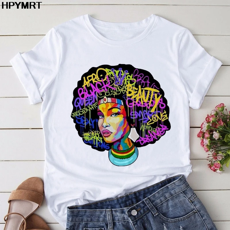 Новинка 2020, летний топ с изображением афро-красавицы, девушки Африки, волос, короны, женская футболка, меланин, королева, женская футболка, модная повседневная футболка