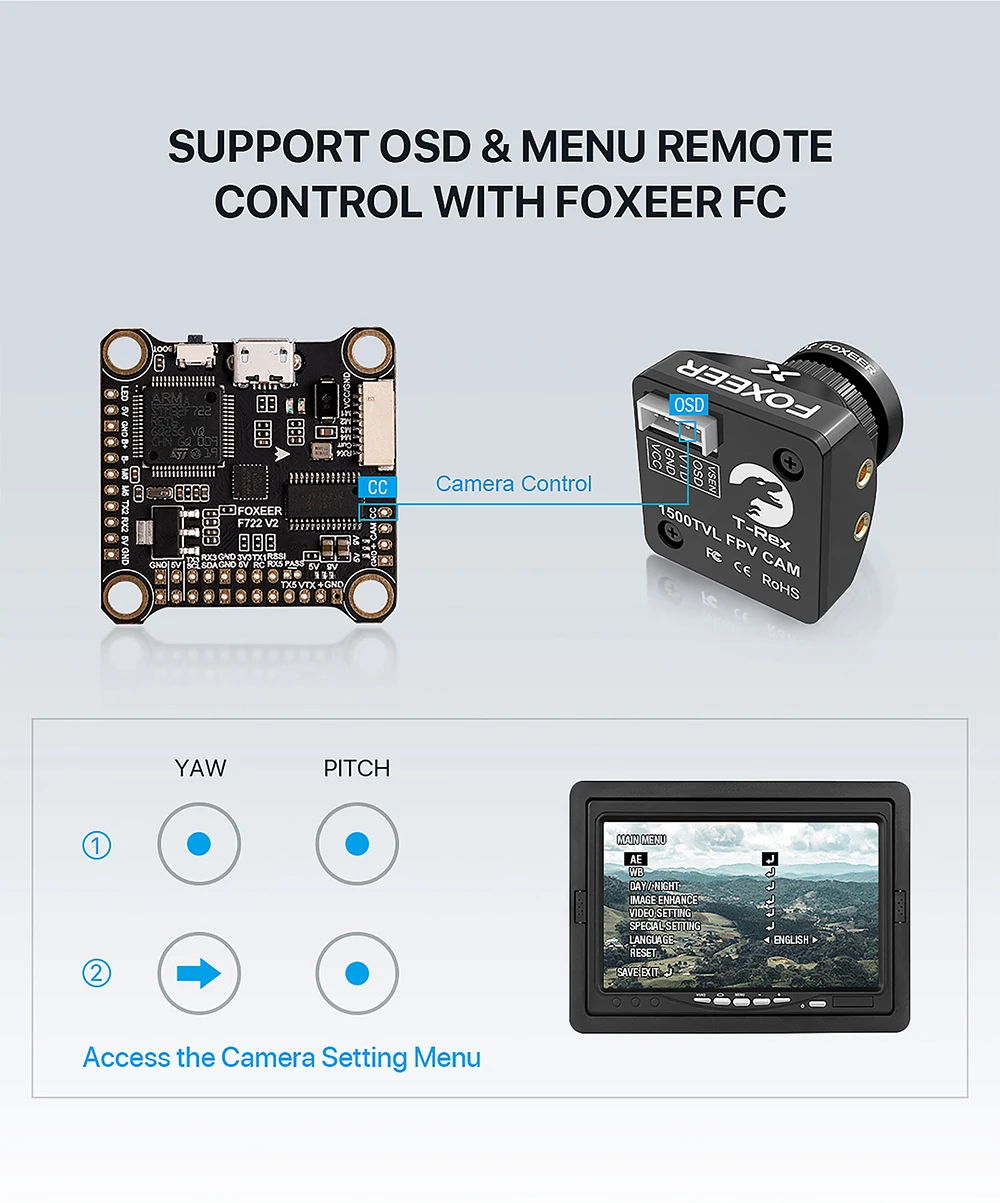 Эксклюзивный светодиодный индикатор Iptimization.Полный гоночный и фристайл.6 мс Супер низкая задержка.0.001Lux низкий светильник.110 дБ Супер WDR.4:3/16:9 & PAL/NTSC switchacble.Поддержка OSD и меню дистанционного управления с Foxeer FC.