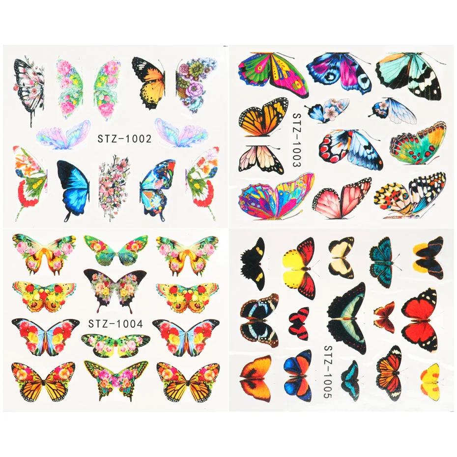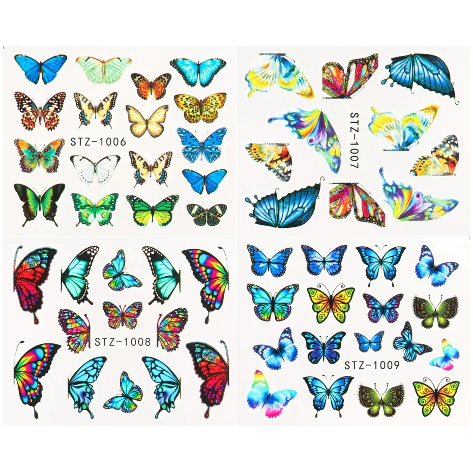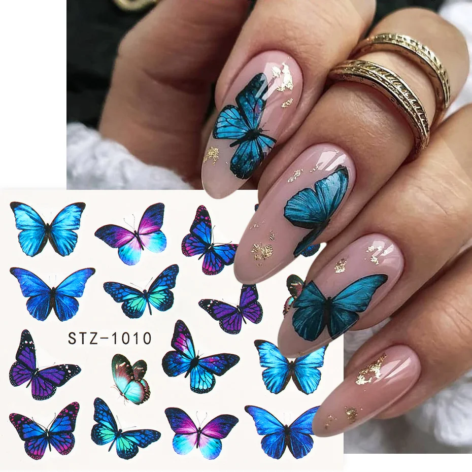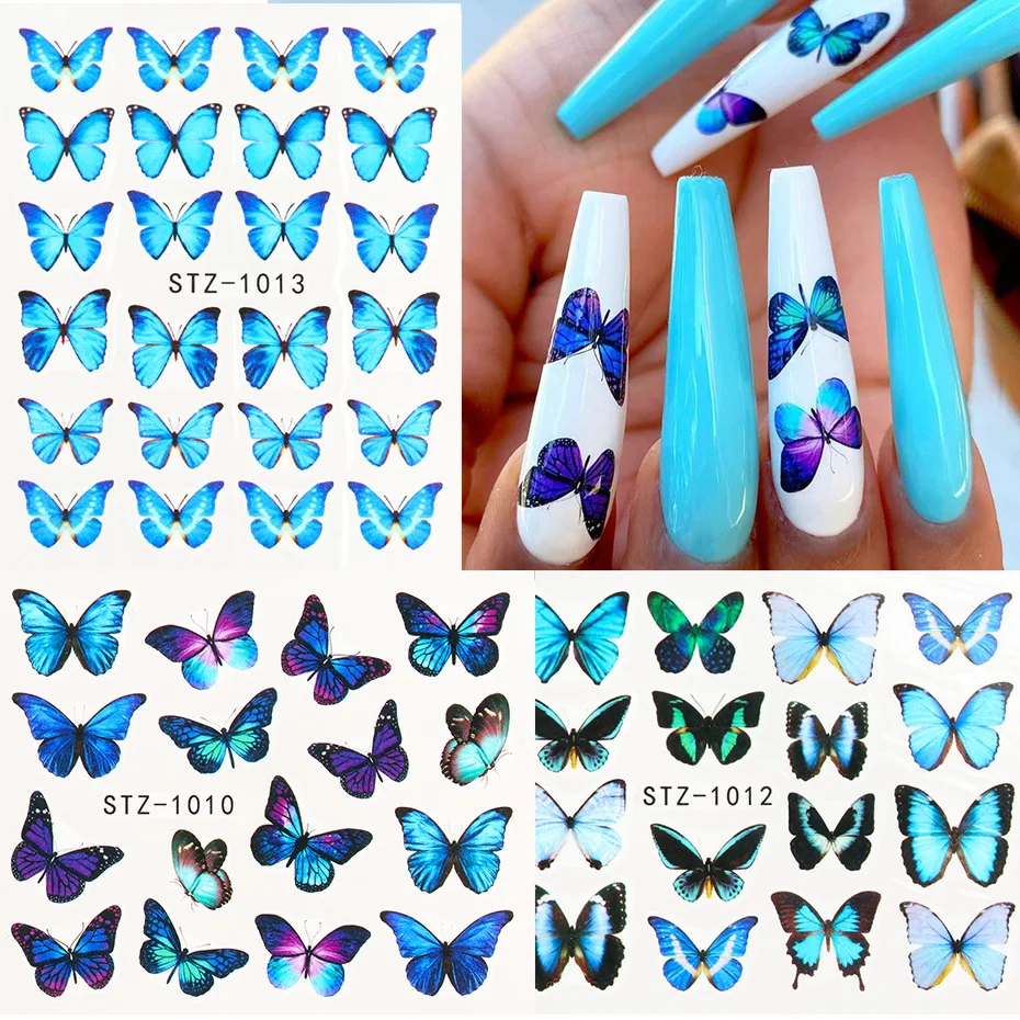 4 шт.компл. наклейки бабочки для ногтей акварельные наклейки синие цветы слайдеры обертывания Маникюр летние украшения для ногтей TRSTZ984-1017