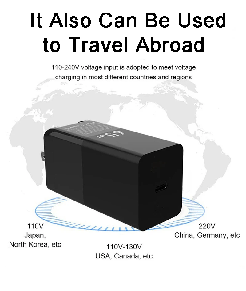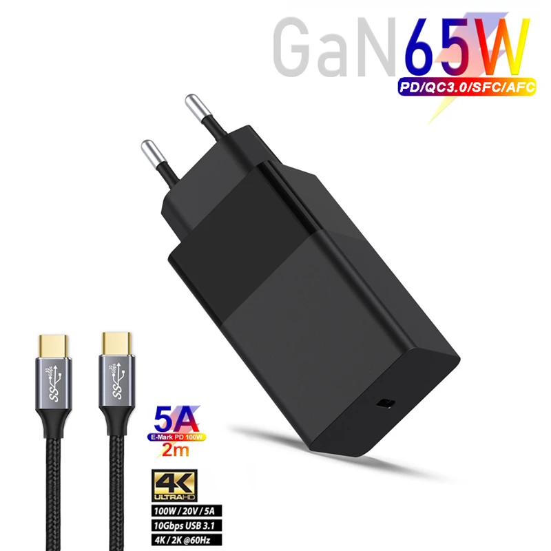 65 Вт PD зарядное устройство USB-C GaN Быстрая Зарядка адаптер питания для MacBook iPhone 12 iPad Pro ASUS HP Nintendo Switch QC4.0 +