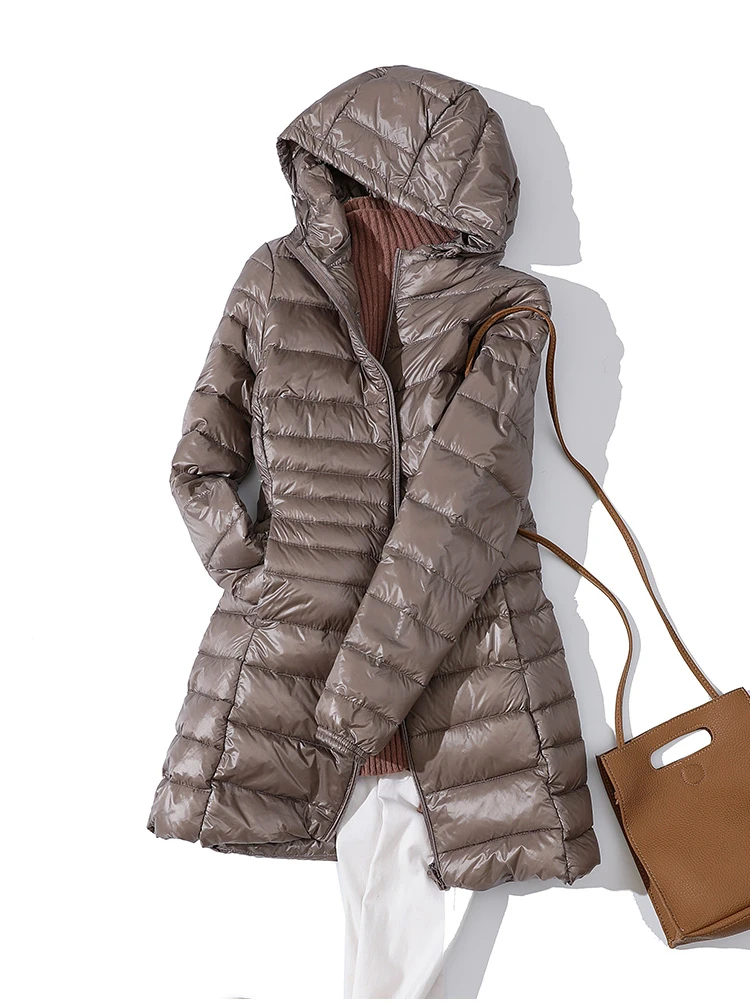 Длинный пуховик, женский зимний ультралегкий пуховик, женское пуховое пальто с капюшоном, женские пальто