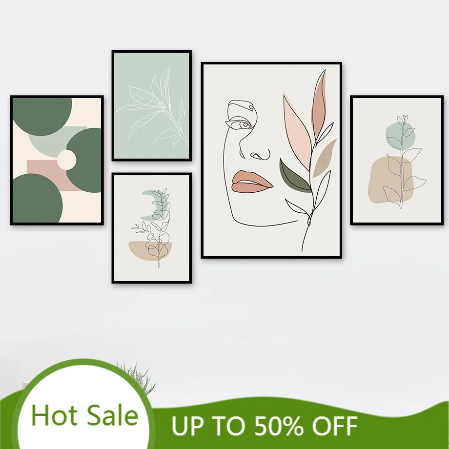 WTQ абстрактное изгиб лица девушки геометрическая форма лист кактус настенное Искусство Холст Картина, печатный плакат скандинавский декор комнаты украшение дома