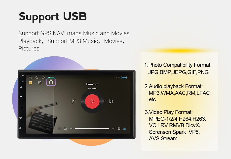 Поддерживает функцию Wi-Fi, для вас удобно воспроизводить онлайн-музыку, воспроизводить видео, использовать карту в реальном времени во время вождения