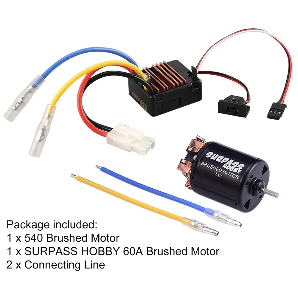 Щеточный двигатель SURPASS HOBBY 540 13T, 17T, 21T, 23T, 27T, 35T, 45T, 55T, 80T с регулятором скорости 60A для гоночных автомобилей 110 RC