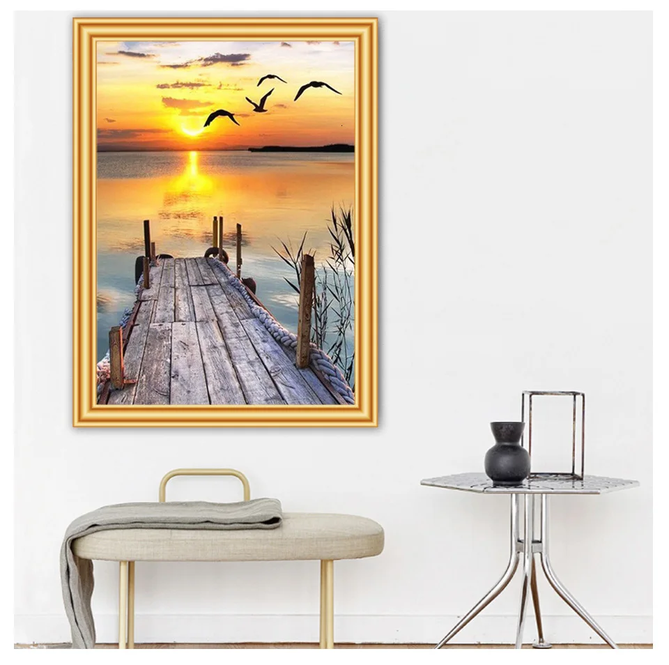 Картина из страз 5D "сделай сам", пейзаж, закат, море, квадратная вышивка, картина для стразы, домашний декор, подарок