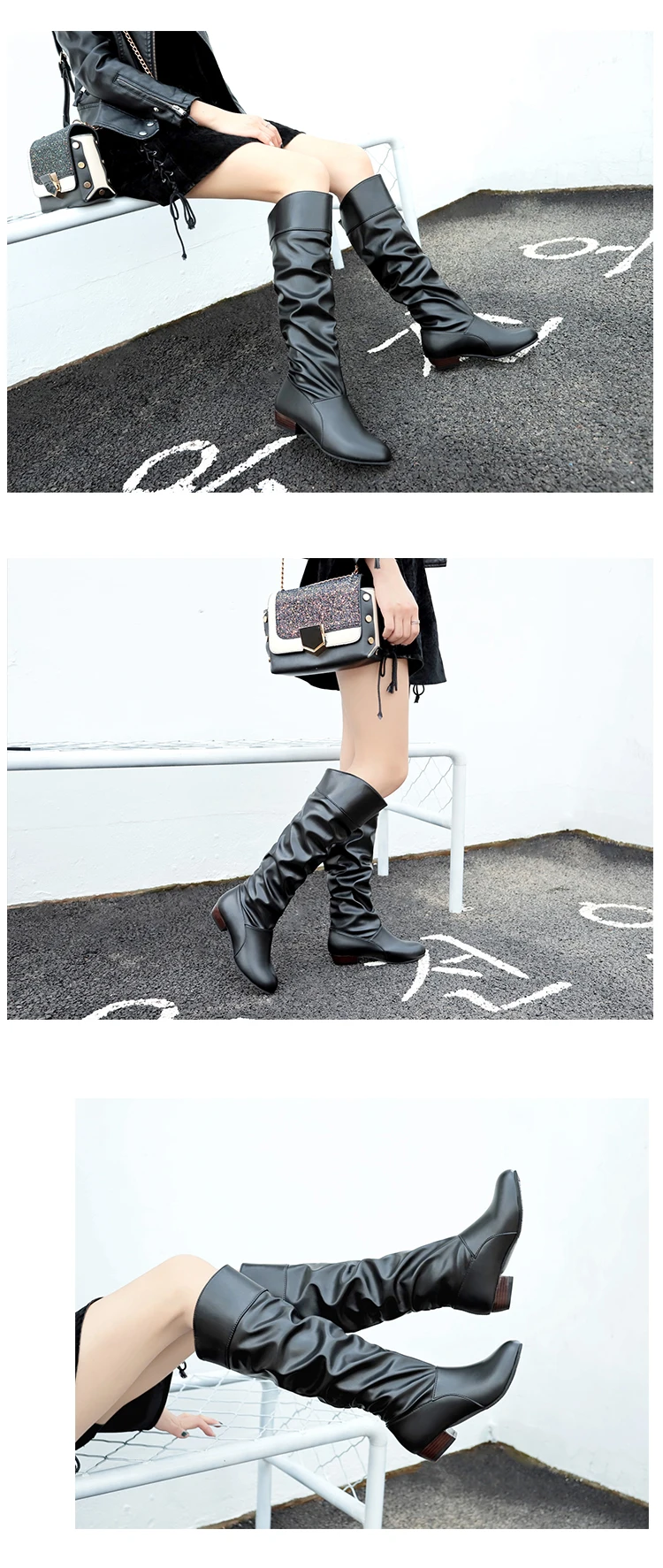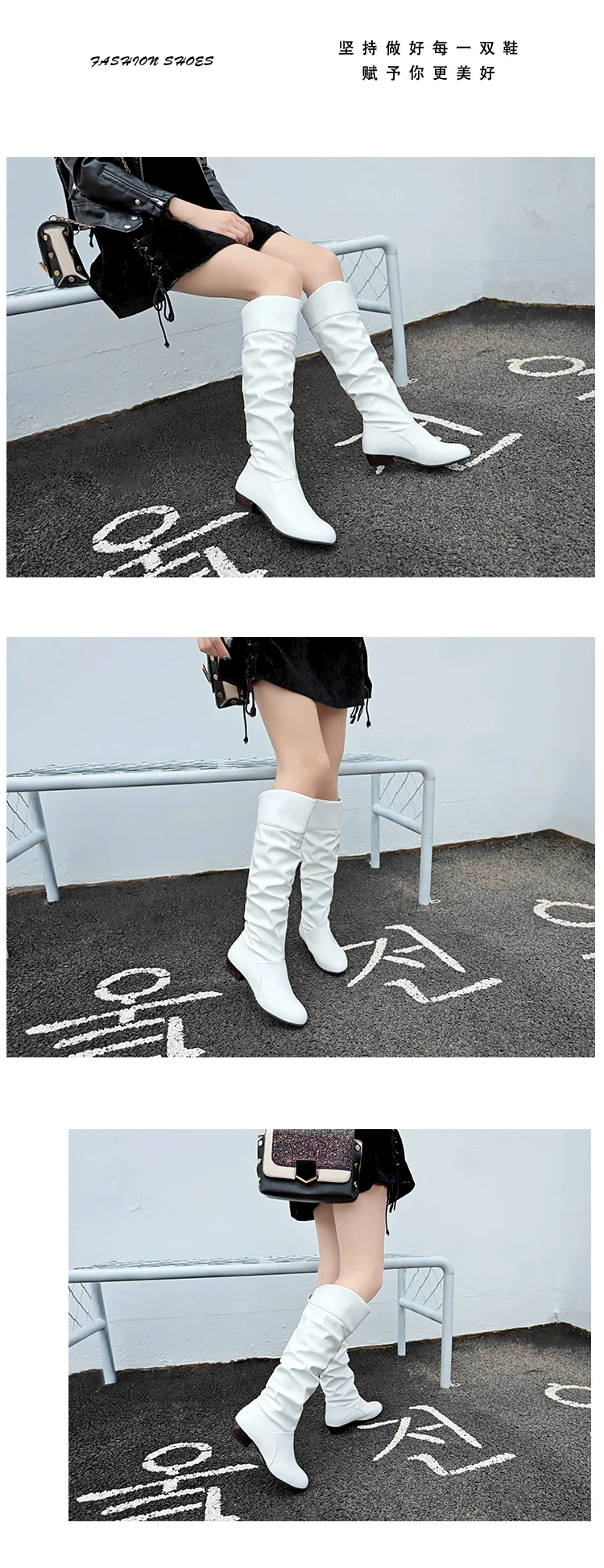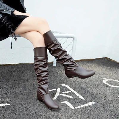 Женские сапоги из искусственной кожи, черные и белые сапоги до колена, стрейч, для весны, 2021