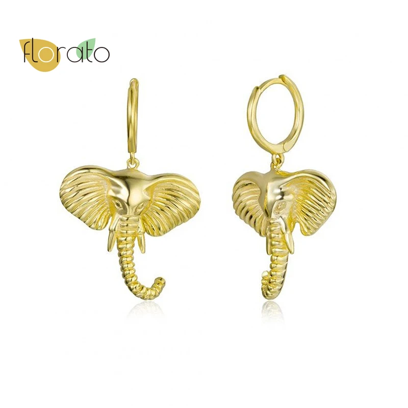Новые серьги-кольца из стерлингового серебра 925 пробы для женщин, серьги «Слоник» с изображением животных, Золотые серьги, ювелирные изделия