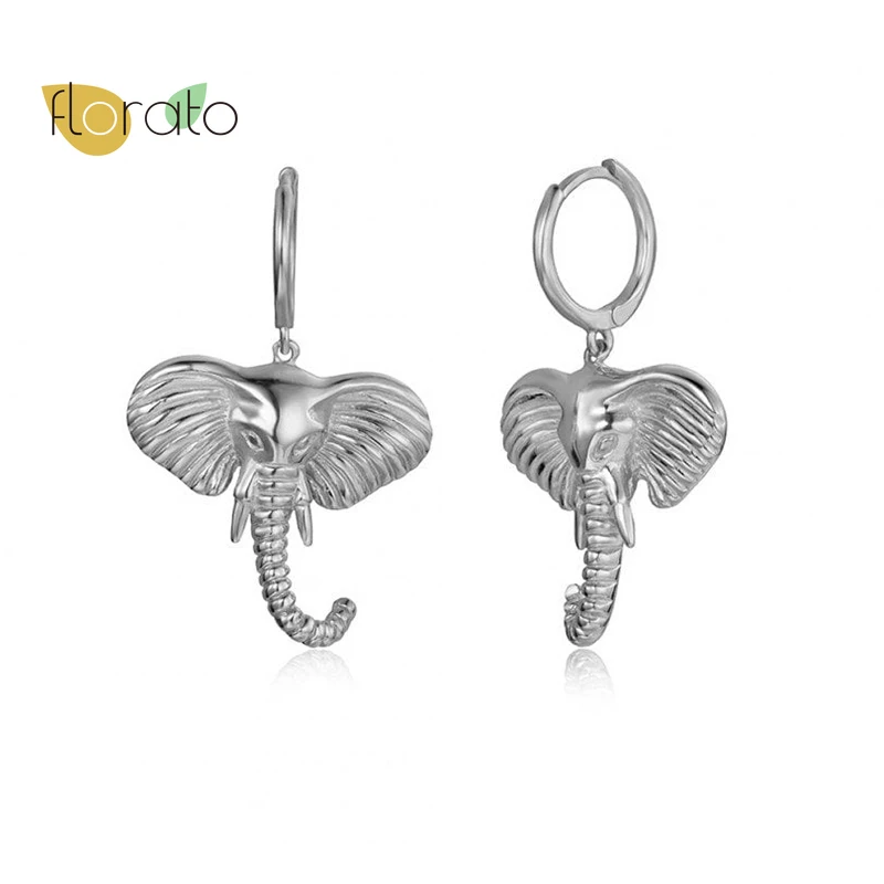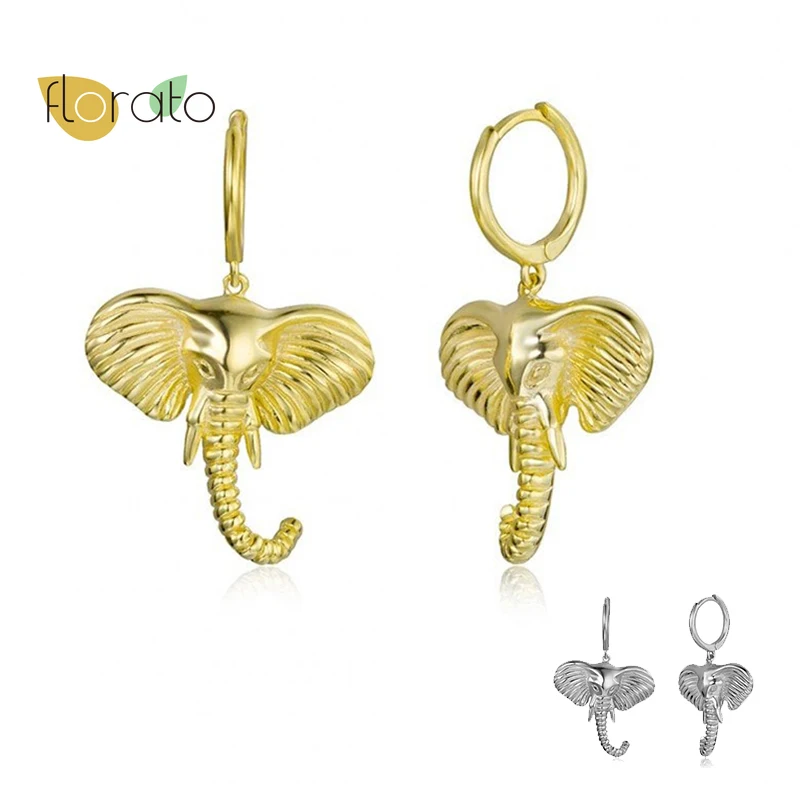 Новый 925 стерлингового серебра большие серьги-кольца для женщин Личность животных серьги Слоник Обручи Золотые серьги ювелирные изделия Pendientes