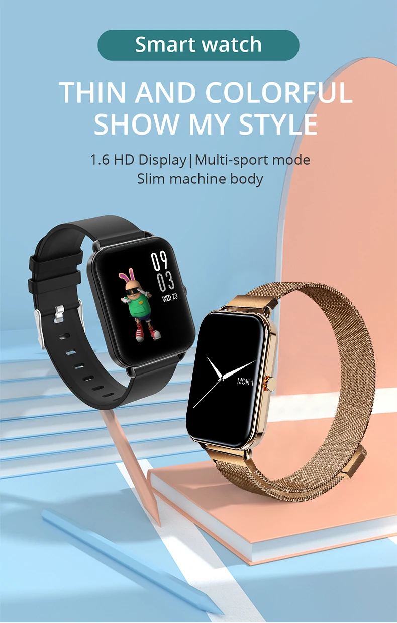 Модель: G16ЦП: GR5515Ремешок: 18 ммПередний чехол: цинковый сплавЗадний чехол: ABS + PCЭкран: 1,6 дюймов полный сенсорный ЭкранРазрешение: 240 * 288pxЕмкость: 170 мАчBluetooth: Bluetooth 5,1Приложение: Da FitПоддержка: IOS 9,0 Android 4,4 и выше