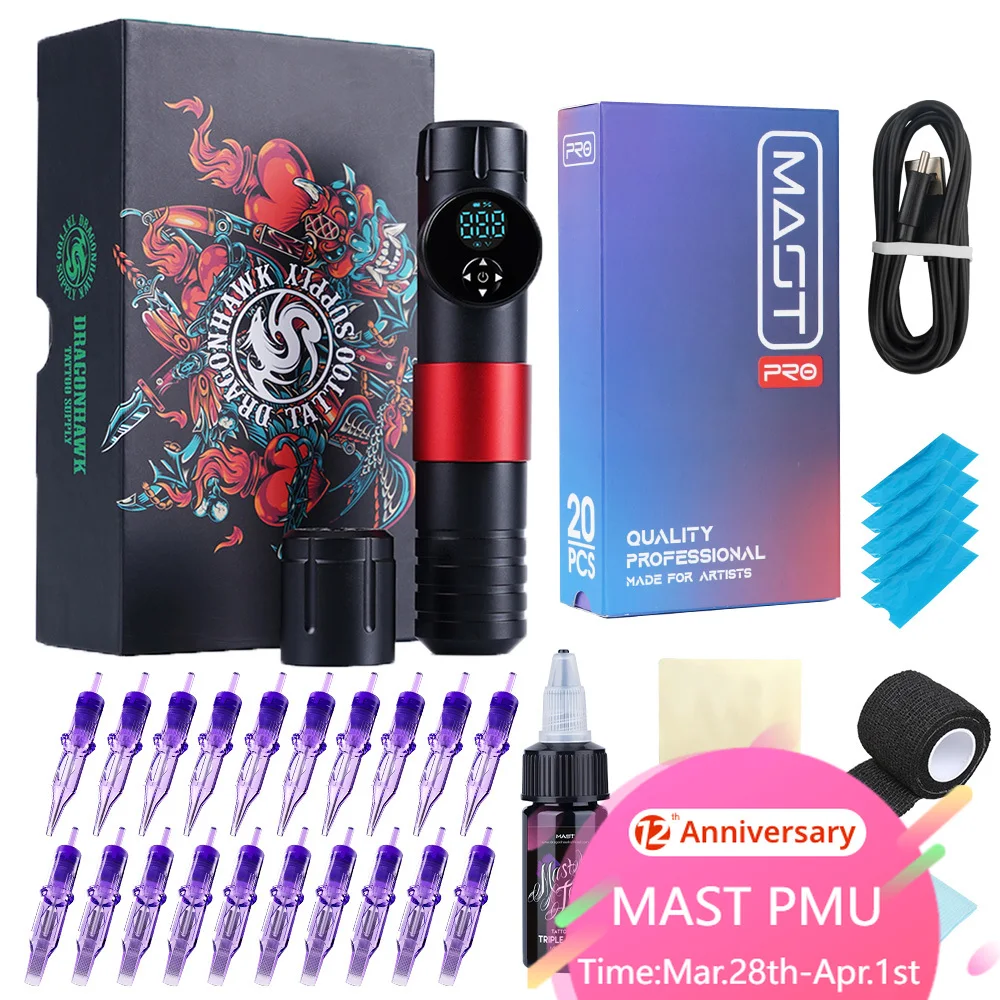 Dragonhawk беспроводная аккумуляторная ручка, вращающаяся тату-машинка, светодиодный дисплей, RCA с картриджем Mast Pro, Набор машинок для перманентного макияжа
