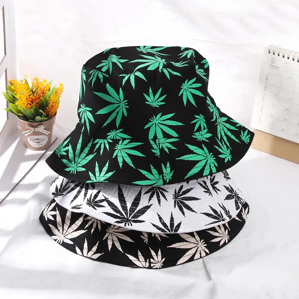 Шляпа рыболовная хлопковая в стиле хип-хоп с принтом кленовых листьев