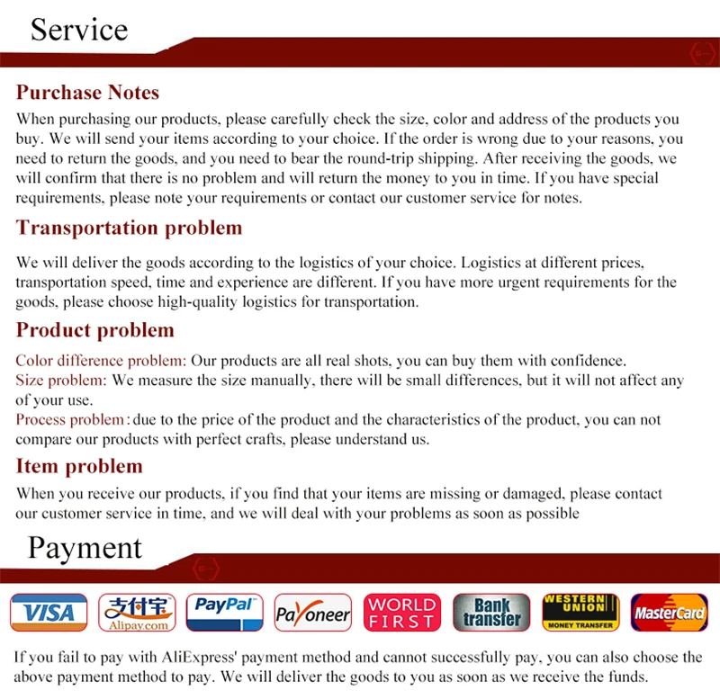 2. Из-за разницы между различными мониторами изображение может не отражать фактический цвет изделия. Спасибо!