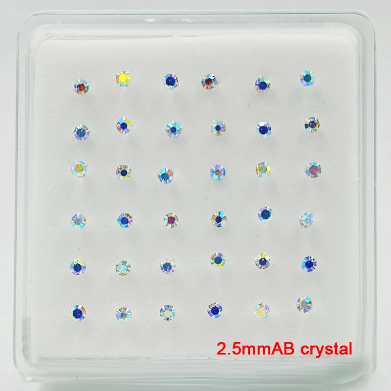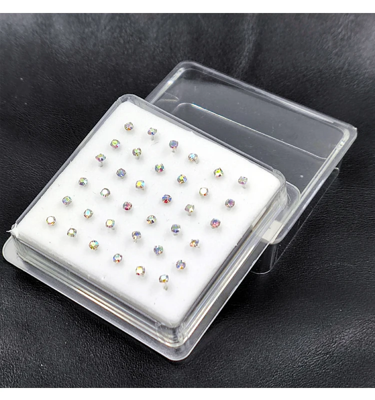 925 пробы Серебряный смешанный цвет 2 мм Кристалл нос шпилька индий...