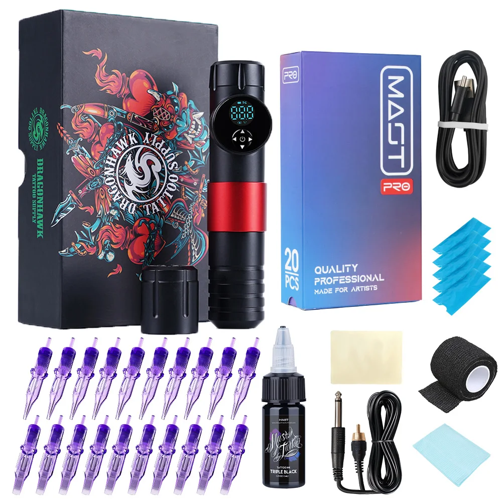 Набор инструментов для татуировки Mast Aion, беспроводной аккумулятор с ЖК-дисплеем, Перманентный набор, тройной черный картридж 15 мл, профессиональные иглы, аксессуары