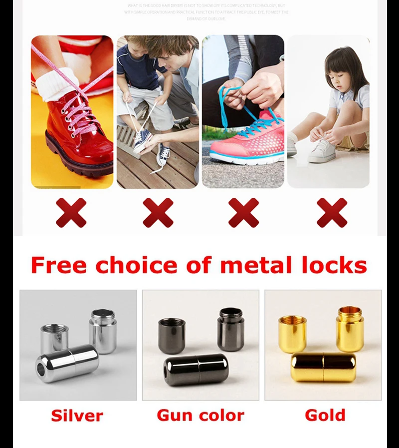 Плоские эластичные шнурки для обуви, типы аксессуаров для обуви, ленивые, безопасные, для кроссовок, без завязывания, круглые, металлические, подходят для всех