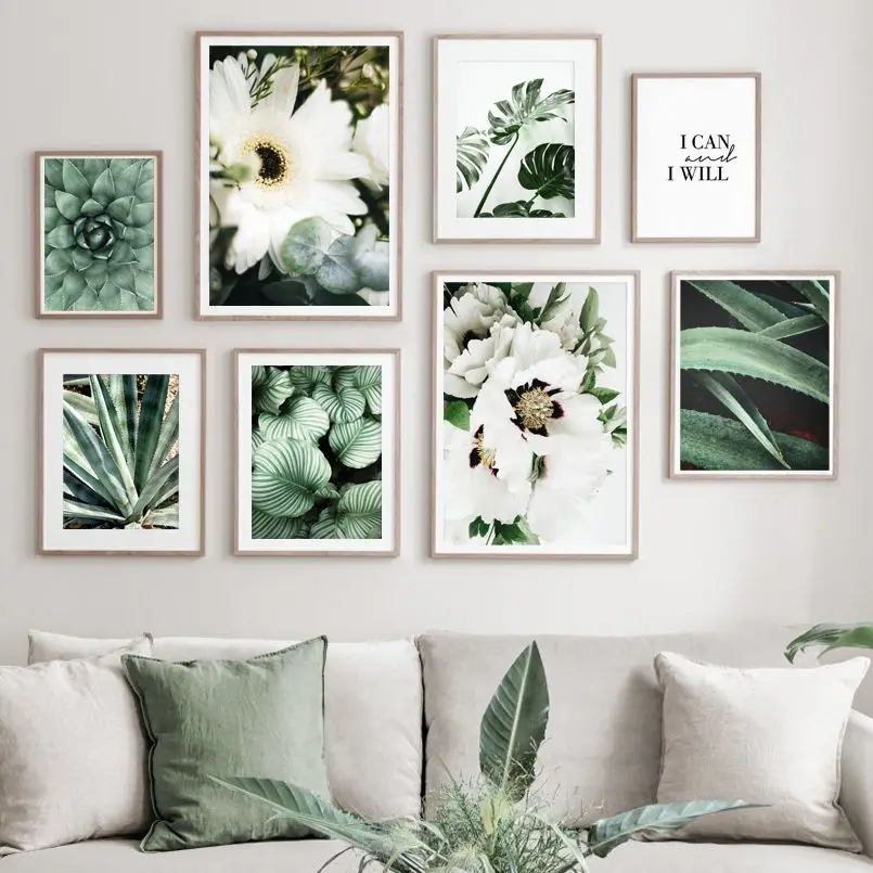 Акварельные листья настенная живопись холст зеленый стиль растение ...